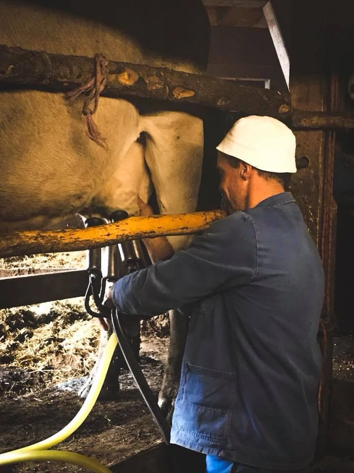 Gleich neben dem Stall werden auch die Kühe gemolken und ein paar Meter weiter entsteht unser heißgeliebter Käse!