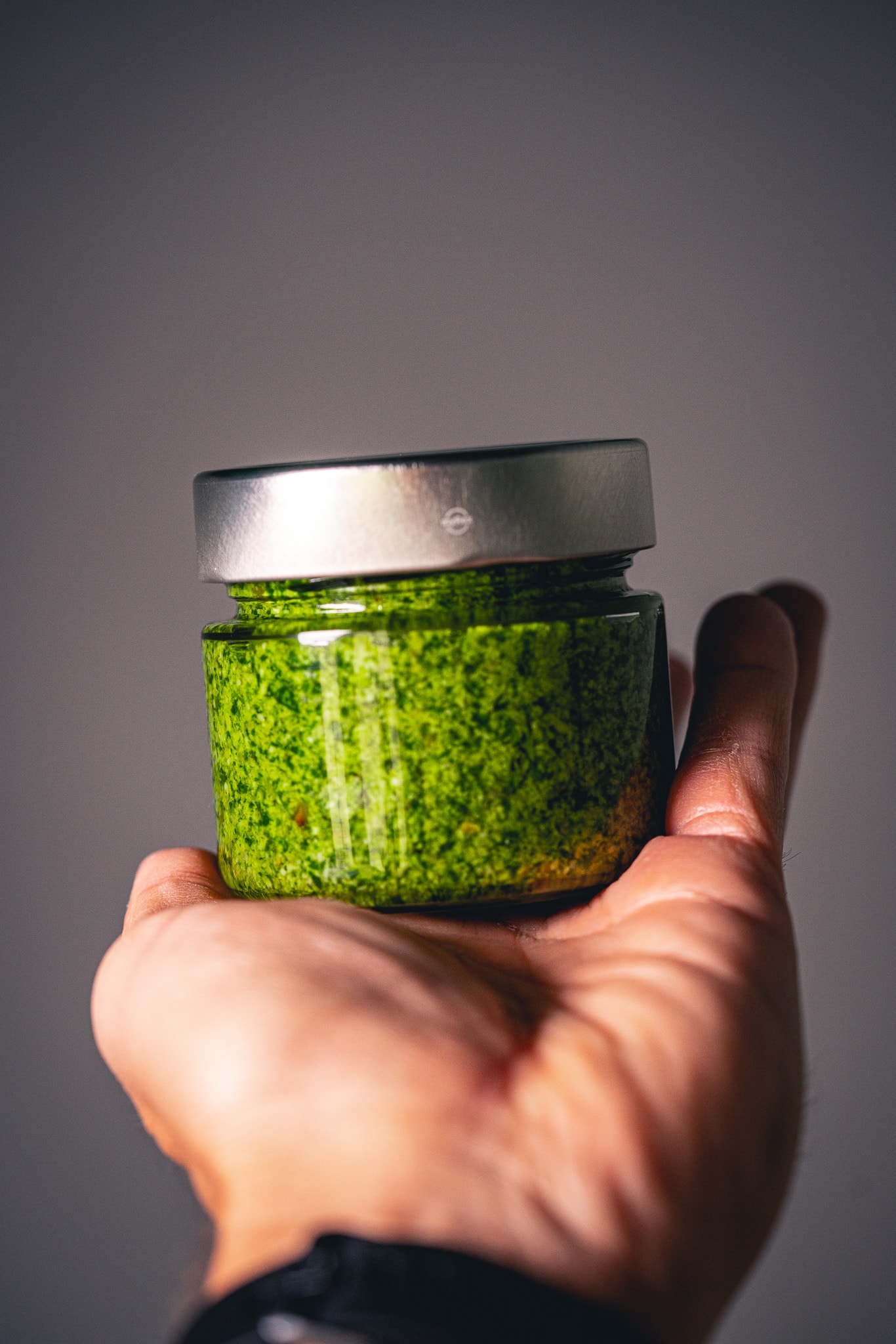 Das Pesto in deine Rex-Gläser füllen, mit einen Schuss Olivenöl bedecken und verschließen.