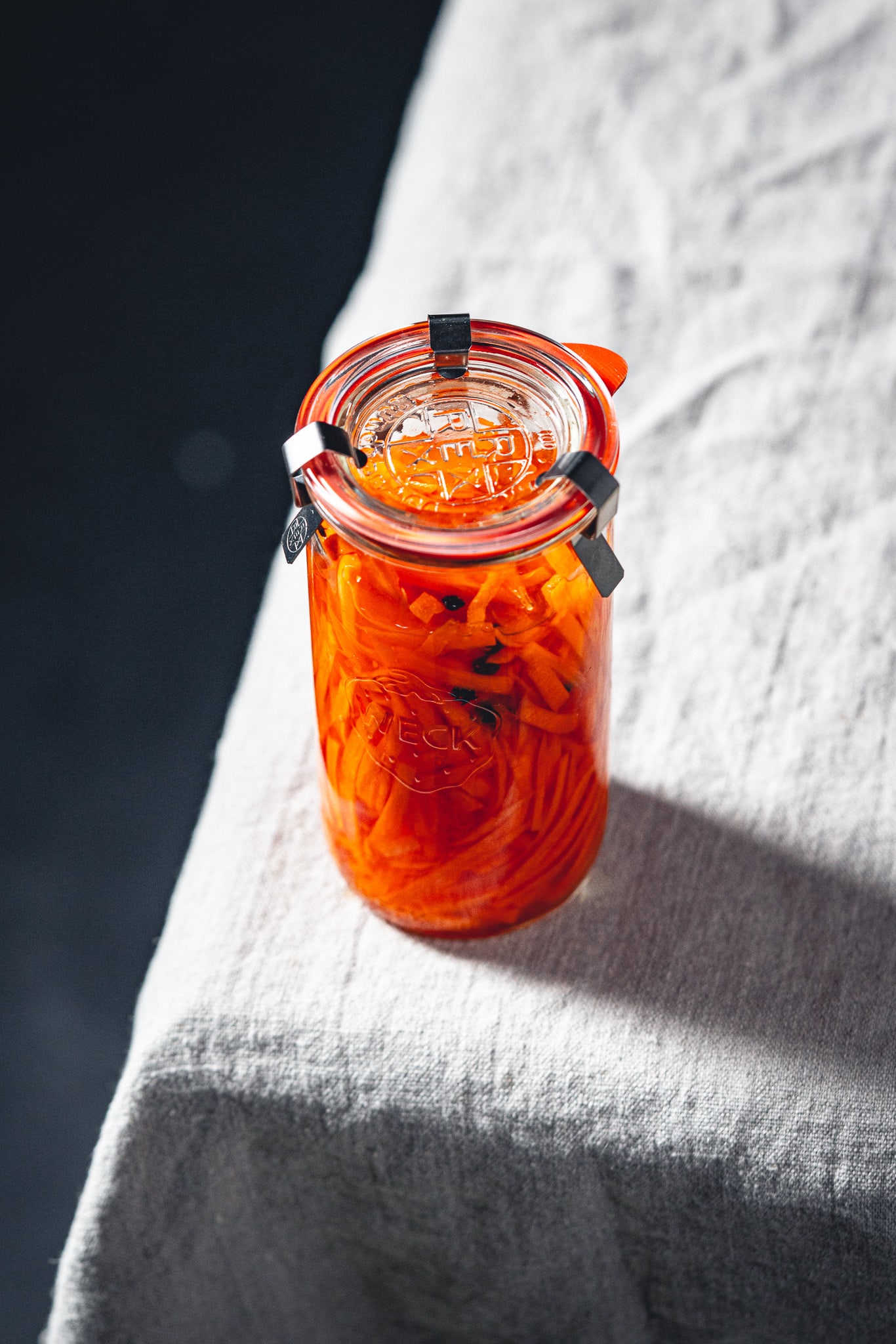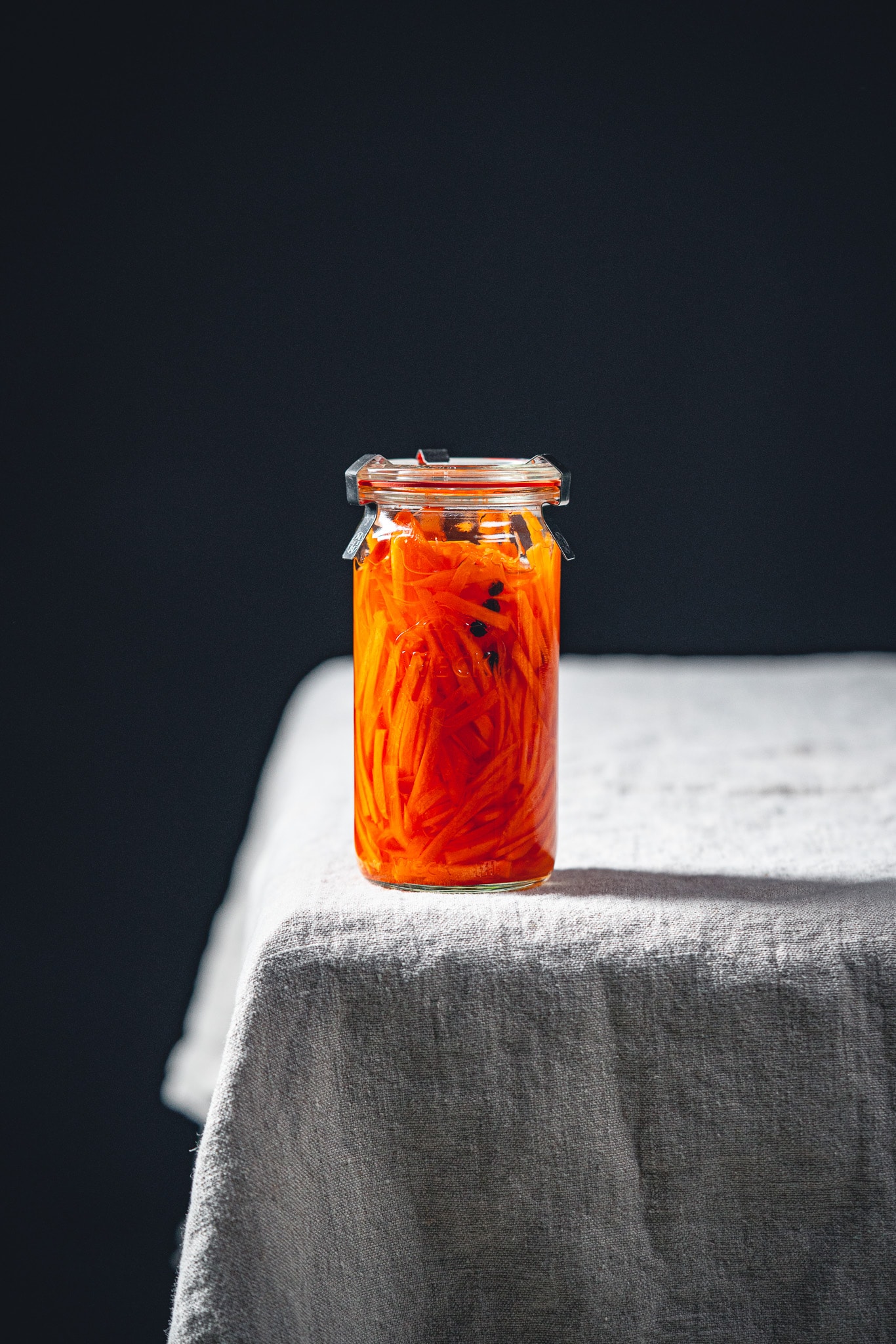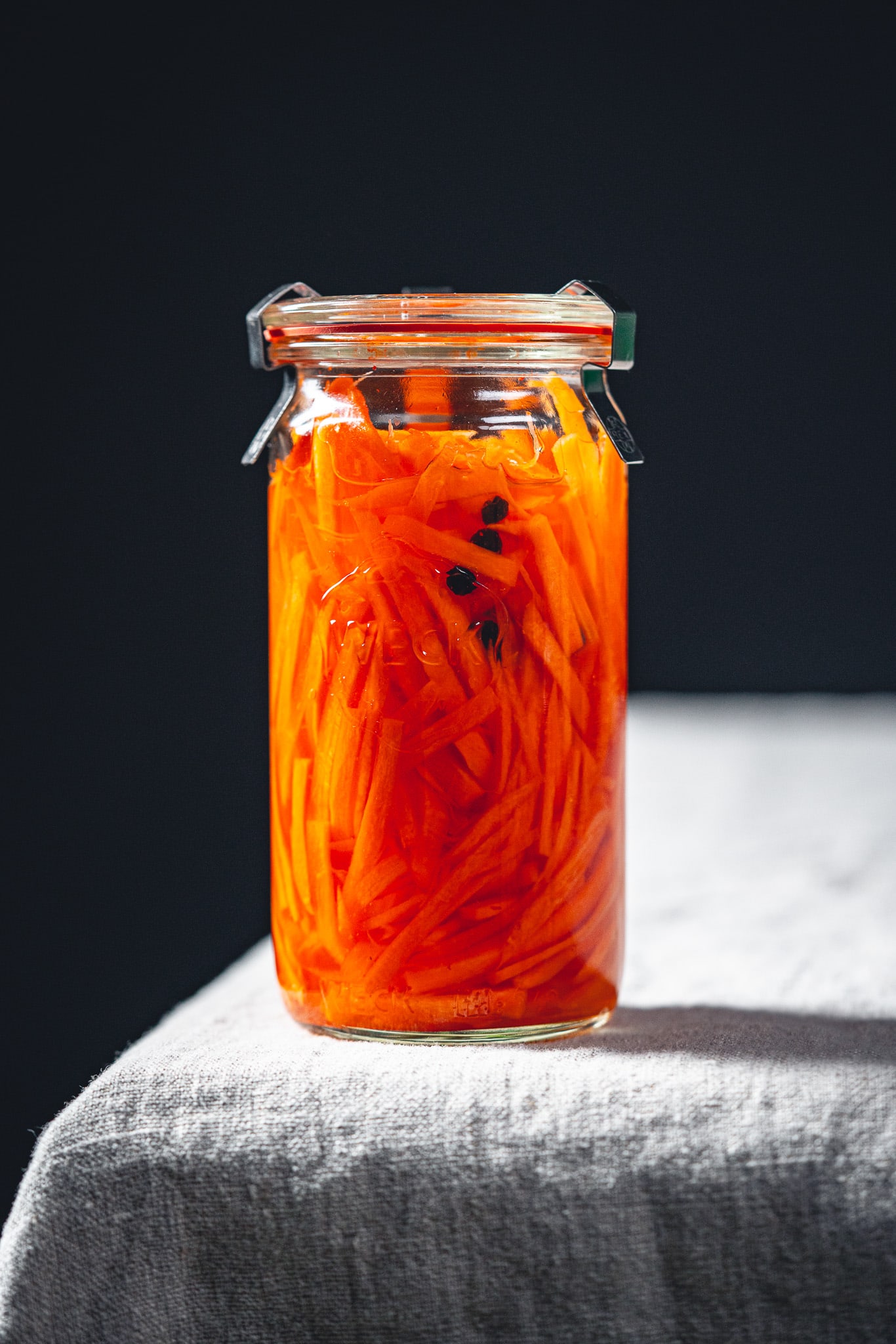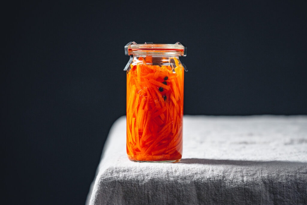 Die Karotten jetzt 2-3 Stunden in der Marinade ziehen lassen und danach bis zu 4 Wochen im Kühlschrank aufbewahren.