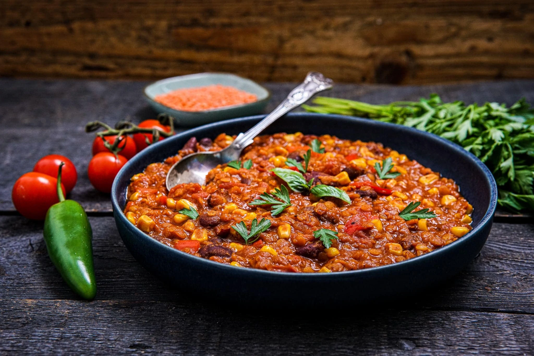 Rote Linsen lassen sich wunderbar verarbeiten und schmecken einfach großartig. Ich nutze sie unglaublich gerne als Fleischersatz – und das bei der Zubereitung unterschiedlichster Gerichte. Dieses Chili sin Carne mit roten Linsen schmeckt sogar so gut, dass das fehlende Fleisch beim Verzehr absolut keine Rolle spielen wird. Versprochen.