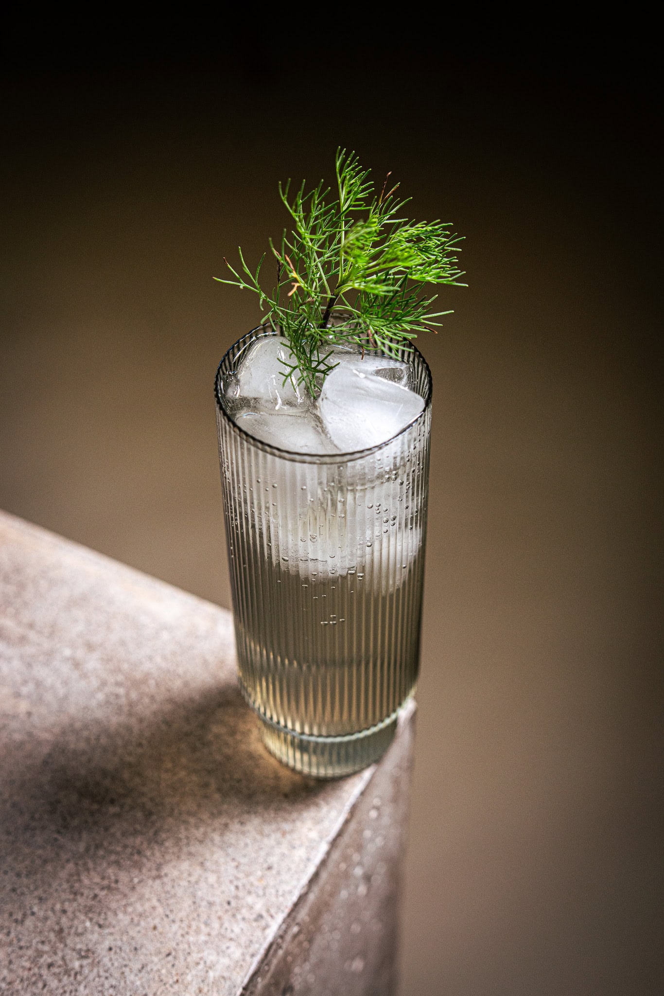 Mit 5–6 Teilen prickelndem Mineralwasser aufgießen, viel Eis und Zitrone dazu – fertig! Moiz… ah, Prost!