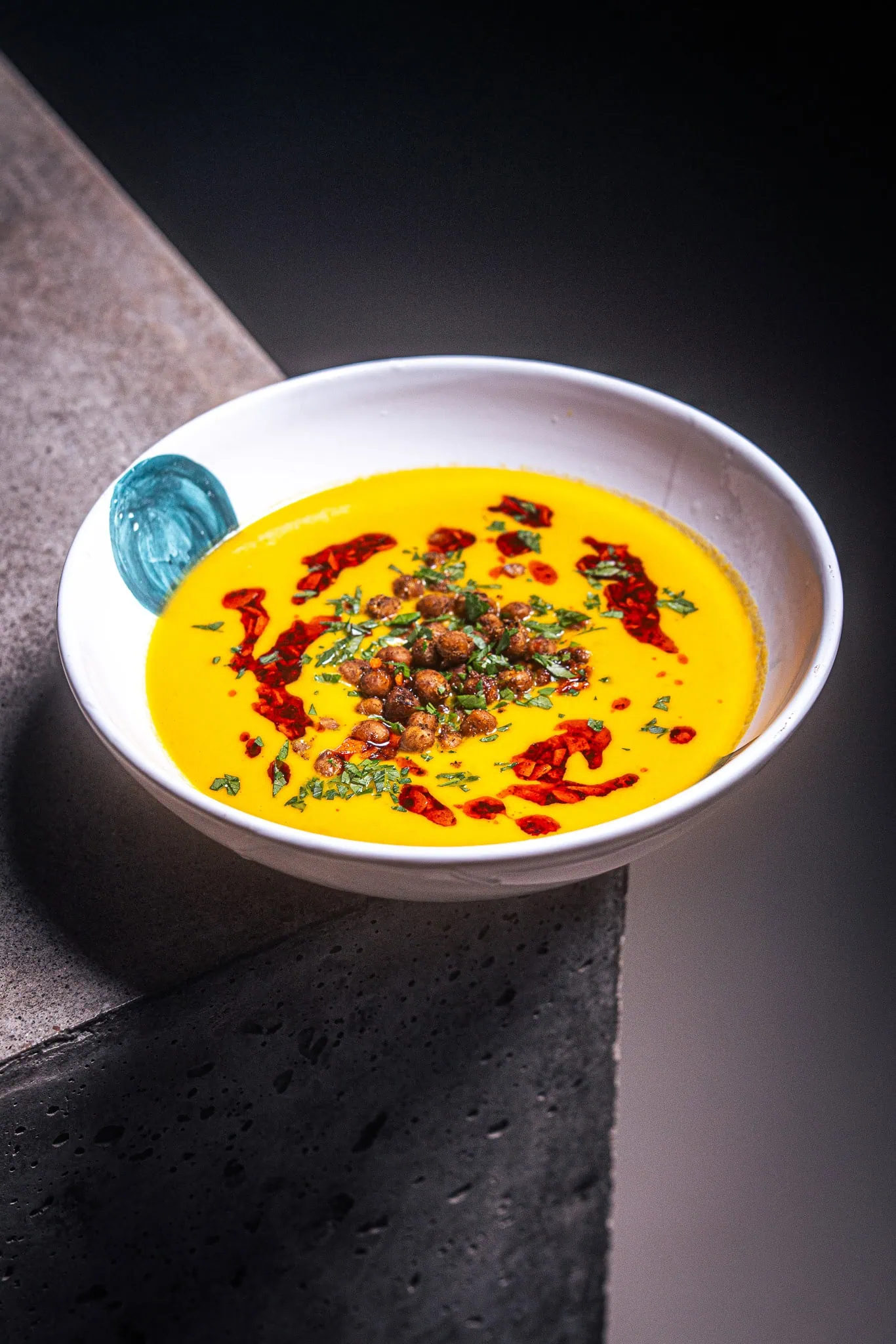 Helles Miso sorgt hier für eine Extraportion Umami, die Salzzitrone bringt frischen Kick und das Finish mit Sauerrahm und Schlagobers macht die Suppe so richtig schön cremig. Und weil ich geschmacklichen Kontrast bekanntermaßen mehr als nur zu schätzen weiß, kommen obendrauf noch geröstete Kichererbsen mit Ras el Hanout, ein bisschen Chili Crisp für die Schärfe und frische Petersilie als grüner Tupfer. Ein Rezept, das nicht nur an kalten Tagen satt und glücklich macht.