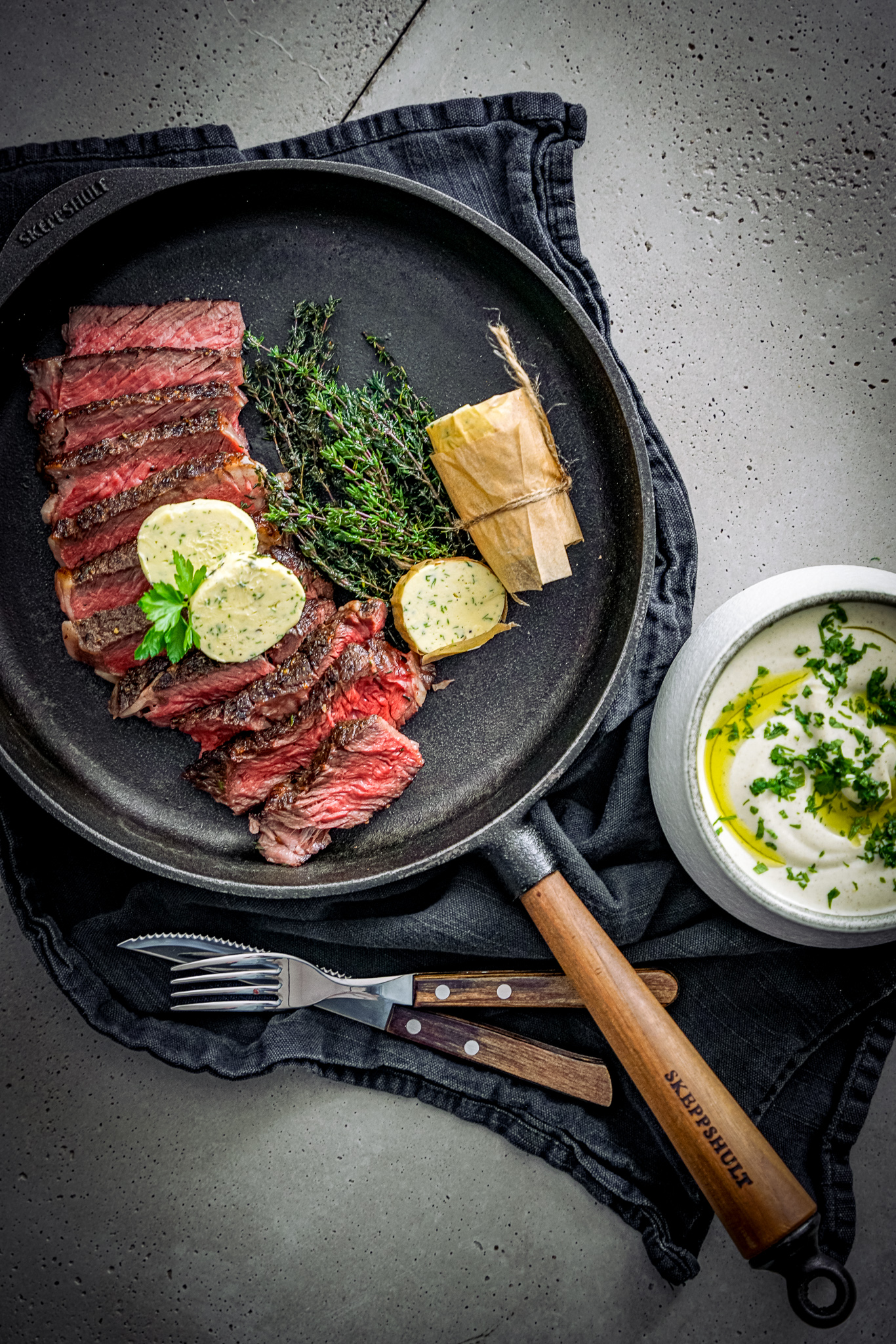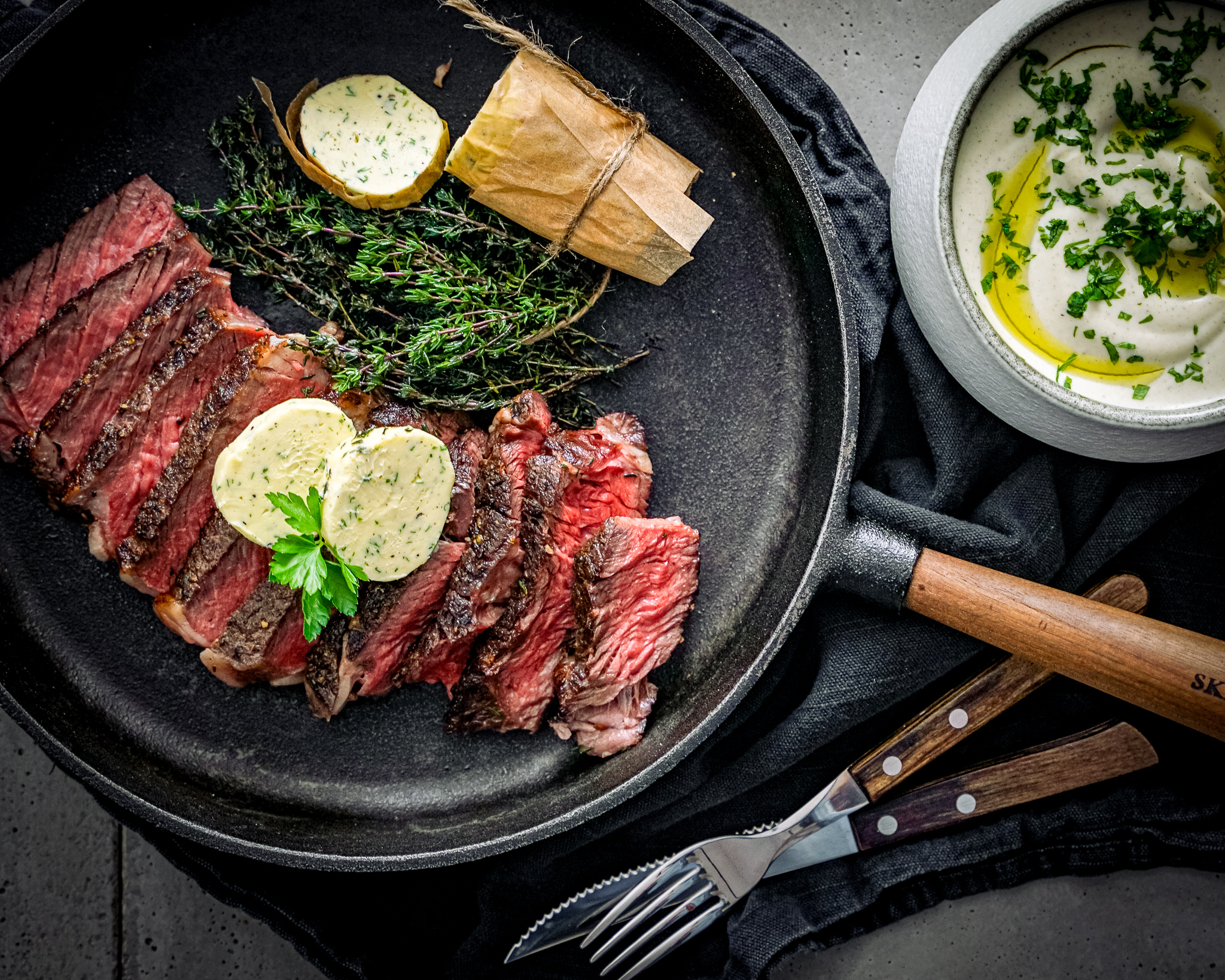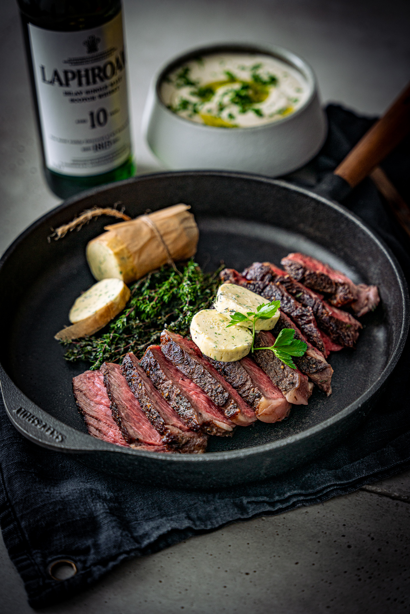 Das perfekte Steak existiert nicht? Tut es doch! Saftiges, zart rosa gebratenes Steak mit frischen Kräutern und einer kräftigen Whisky-Butter. Mehr braucht es auch gar nicht. Puristisch, ohne unnötigen Firlefanz und perfekt geeignet für jeden Anlass. Unkomplizierter kriegst du deine Gäste nicht satt – und glücklich.