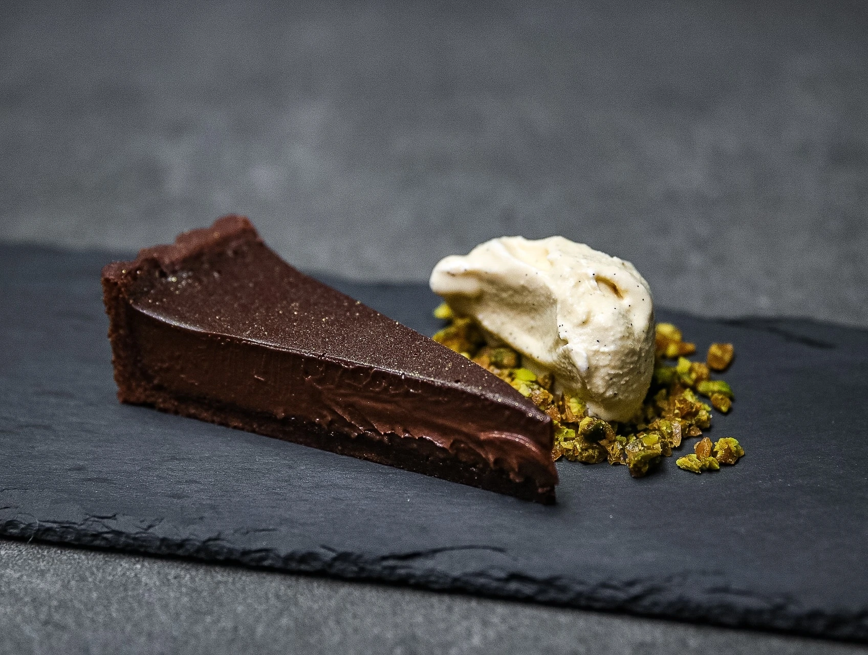 Lust auf eine Schokoladentorte Deluxe? Wie wäre es mit dieser köstlichen Double Chocolate-Tarte mit cremigem Vanille-Tonka-Eis und crunchy Pistazien-Krokant? Klingt gut? Finde ich auch und hab meine klassische Double-Choc-Tarte deshalb ein wenig gepimpt! Schokoladentorte geht schließlich immer und manchmal braucht sie einfach einen festlichen Touch. Diese Double Chocolate-Tarte eignet sich nicht nur hervorragend zum nachmittäglichen Kaffee, sie passt auch wunderbar als Dessert – vor allem an den Feiertagen. Festlicher wird’s nicht!