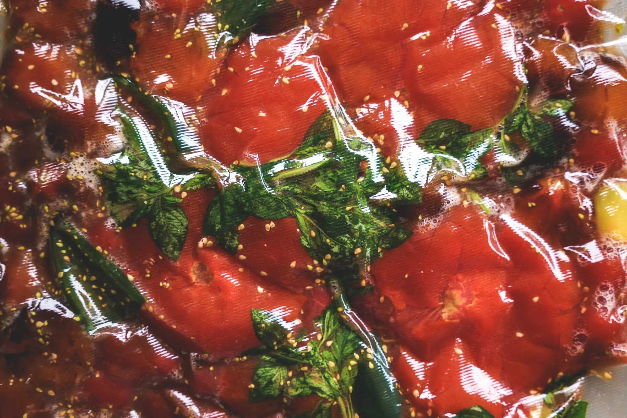 ACHTUNG: Den Beutel jeden Tag prüfen. Es bilden sich bei Tomaten rasch Gase und der Beutel bläht sich auf.