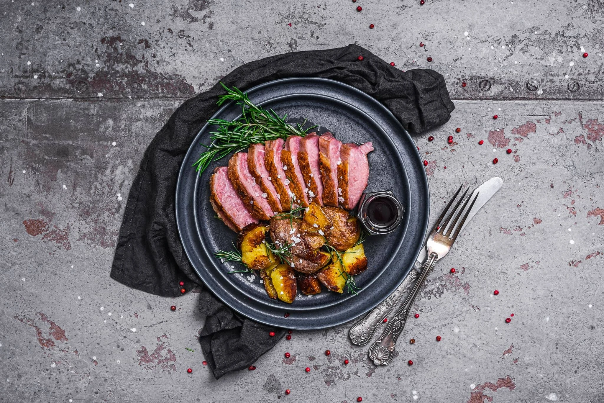 Dabei wird die Entenbrust nach jeder Minute gewendet und somit gleichmäßig von außen nach innen gegart.