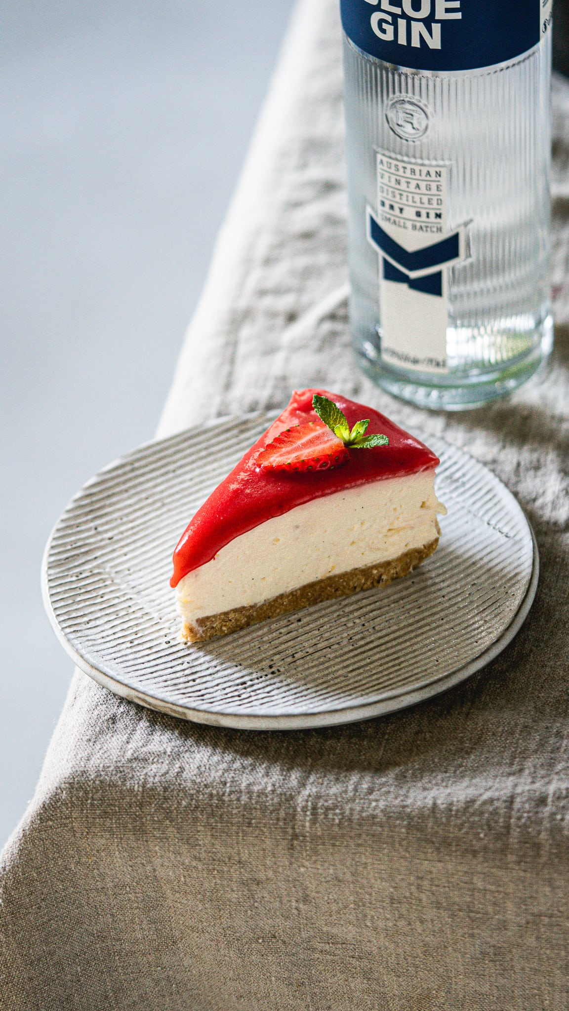 Wer meinen Marillen-Cheesecake schon mal versucht hat, weiß um die luftig-leichte Konsistenz dieses No-Bake-Cheesecakes bestens Bescheid. In dieser Variante werden die Marillen durch Erdbeeren und Rhabarber ersetzt. Außerdem gesellt sich ein Schuss Gin mit feinen Zitrusnoten zum Frucht-Layer, was der einfachen Mehlspeise mühelos seinen letzten Schliff verleiht. Kleiner Tipp am Rande: Was vom Frucht-Topping übrig bleibt, kann mit 4 cl Gin und 200 ml Tonic zum frühlingshaften Cocktail aufgegossen werden. Cheers!