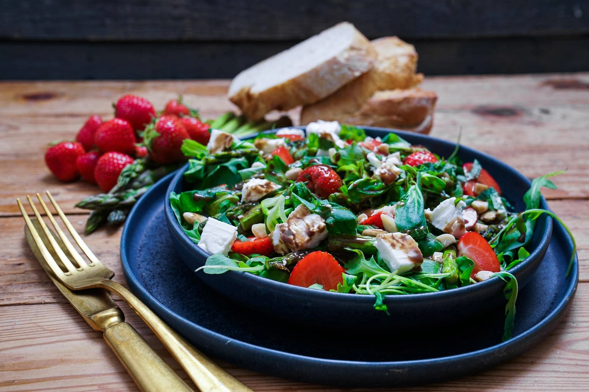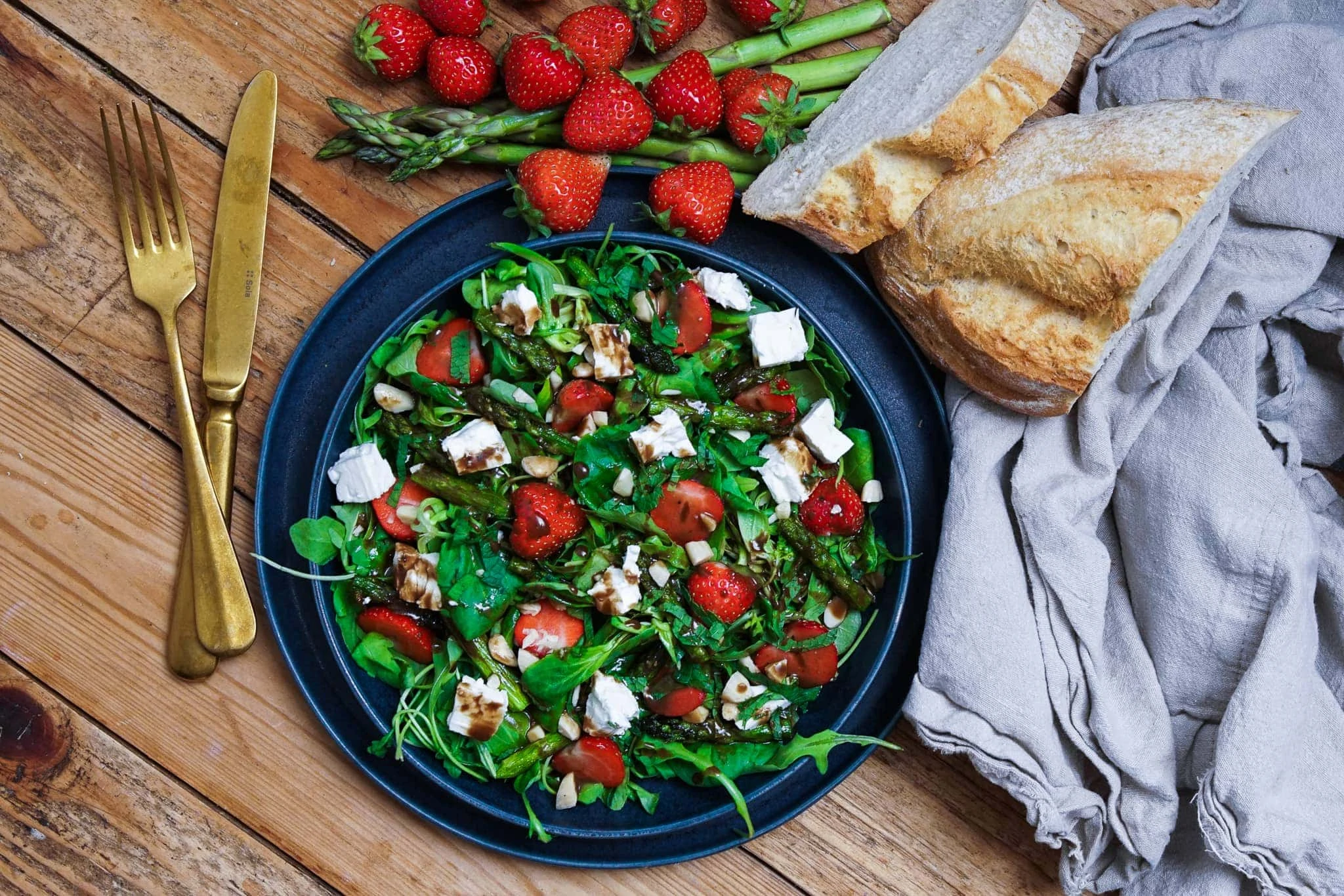 Erdbeer-Spargel-Salat ist ein absoluter Klassiker, den ich persönlich am liebsten mit würzigem Feta und frischem Brot serviere. Ein wunderbar frühlingshaftes Gericht, das nicht nur im Handumdrehen zubereitet ist, sondern auch geschmacklich auf ganzer Linie überzeugt.