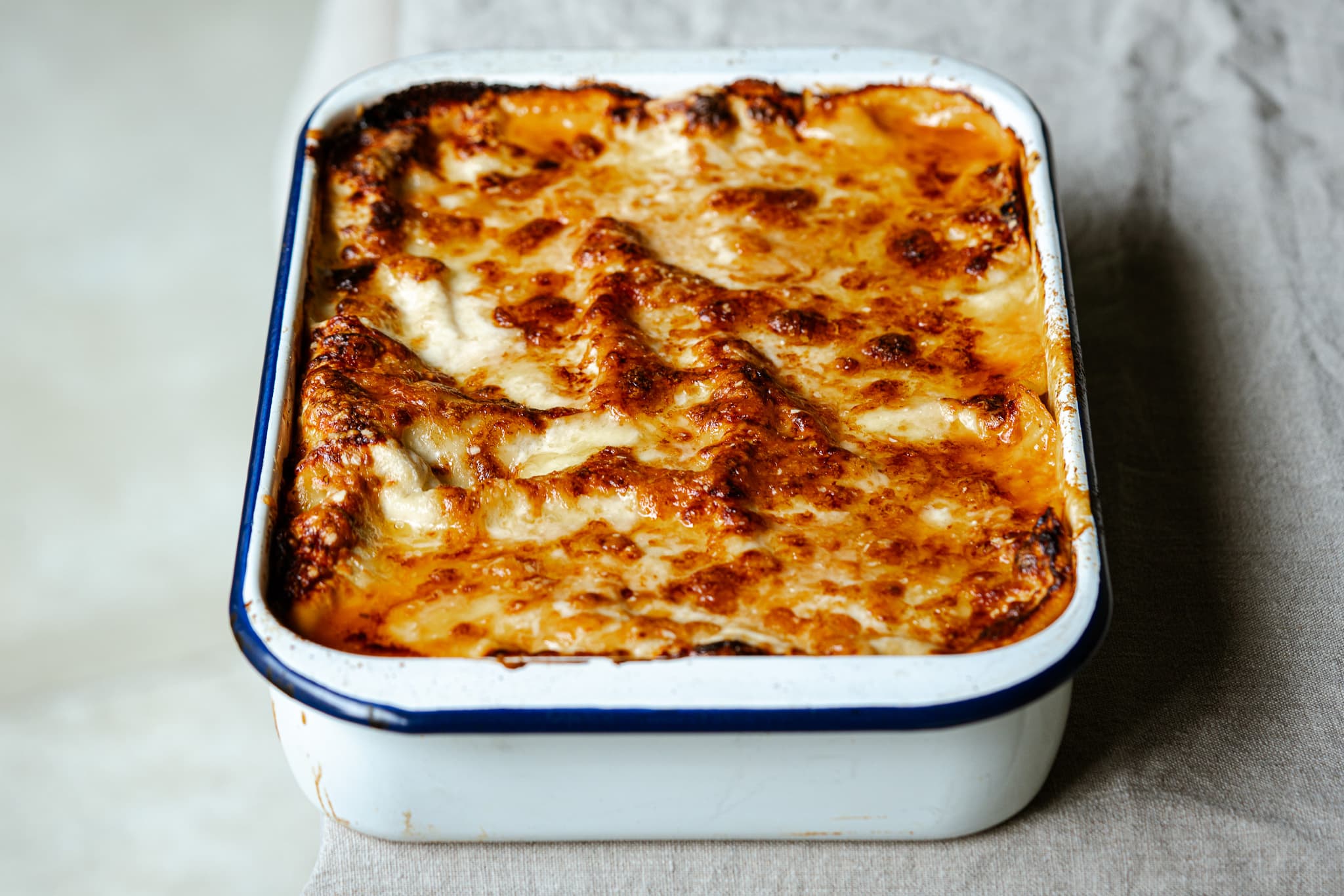 Backofen auf 220 °C Ober- und Unterhitze vorheizen und die Lasagne darin 20-30 Minuten goldbraun backen.