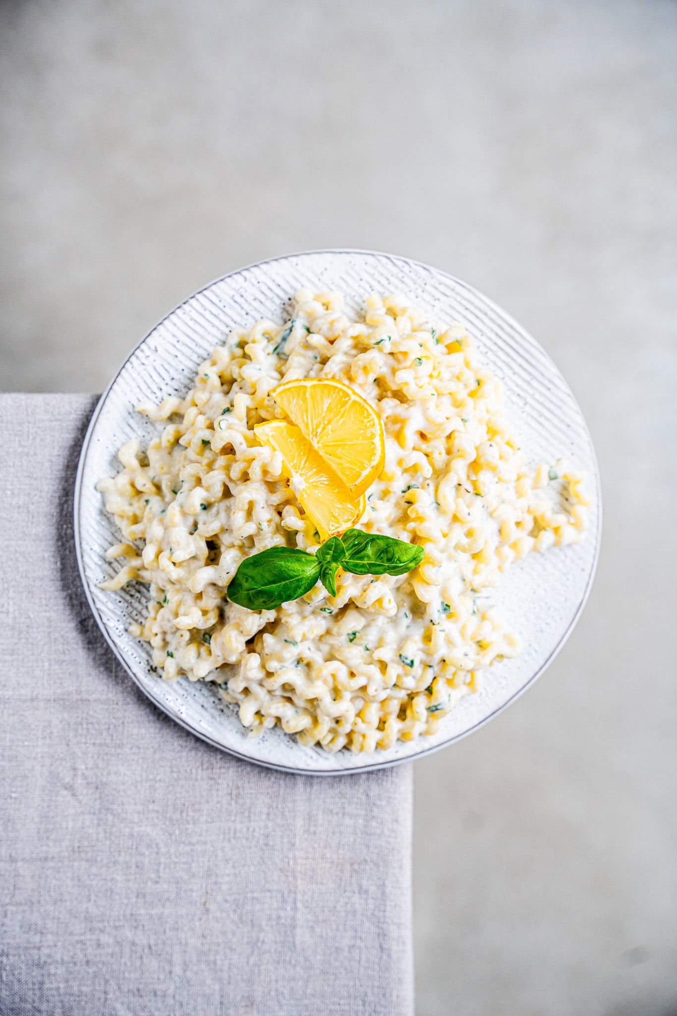 Auf Tellern anrichten und mit frischem Basilikum garnieren – fertig ist die Ricotta-Zitronen-Pasta! Easy, nicht? Buon appetito!