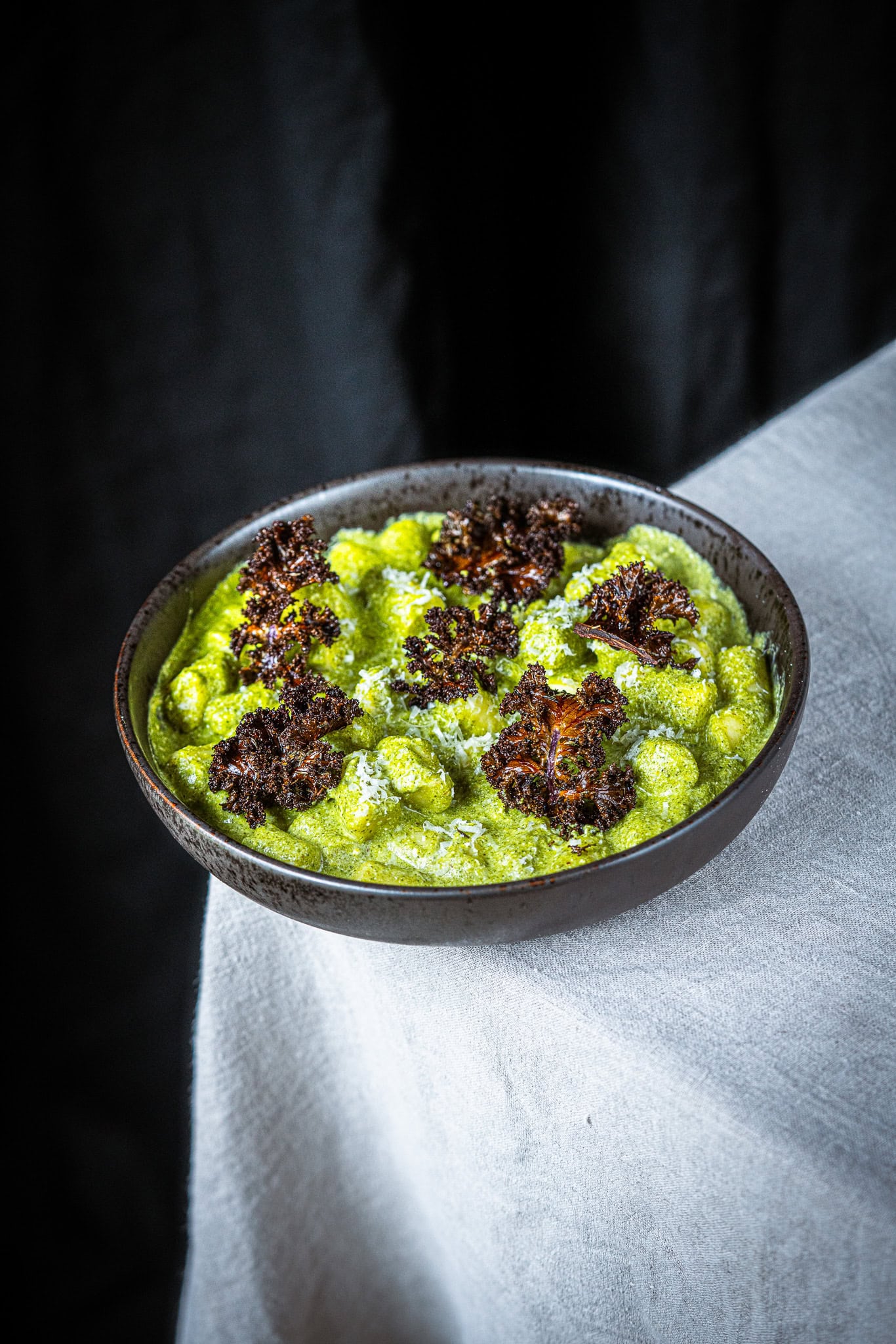 Für das i-Tüpfelchen dieser ausgefallenen Gnocchi mit Pesto sorgen knusprig geröstete lila Grünkohlblätter, die als Topping nicht nur für jede Menge Crunch, sondern auch für das gewisse Extra an Geschmack sorgen. Zusammen mit den flaumigen Gnocchi und einem Klecks cremigem Ricotta ein perfektes Gericht – sowohl für den klassischen Feierabend als auch für Dinnerpartys & Co. Schnapp dir die Zutaten und leg am besten direkt los, denn dieses Rezept wird garantiert ein neuer Liebling!
