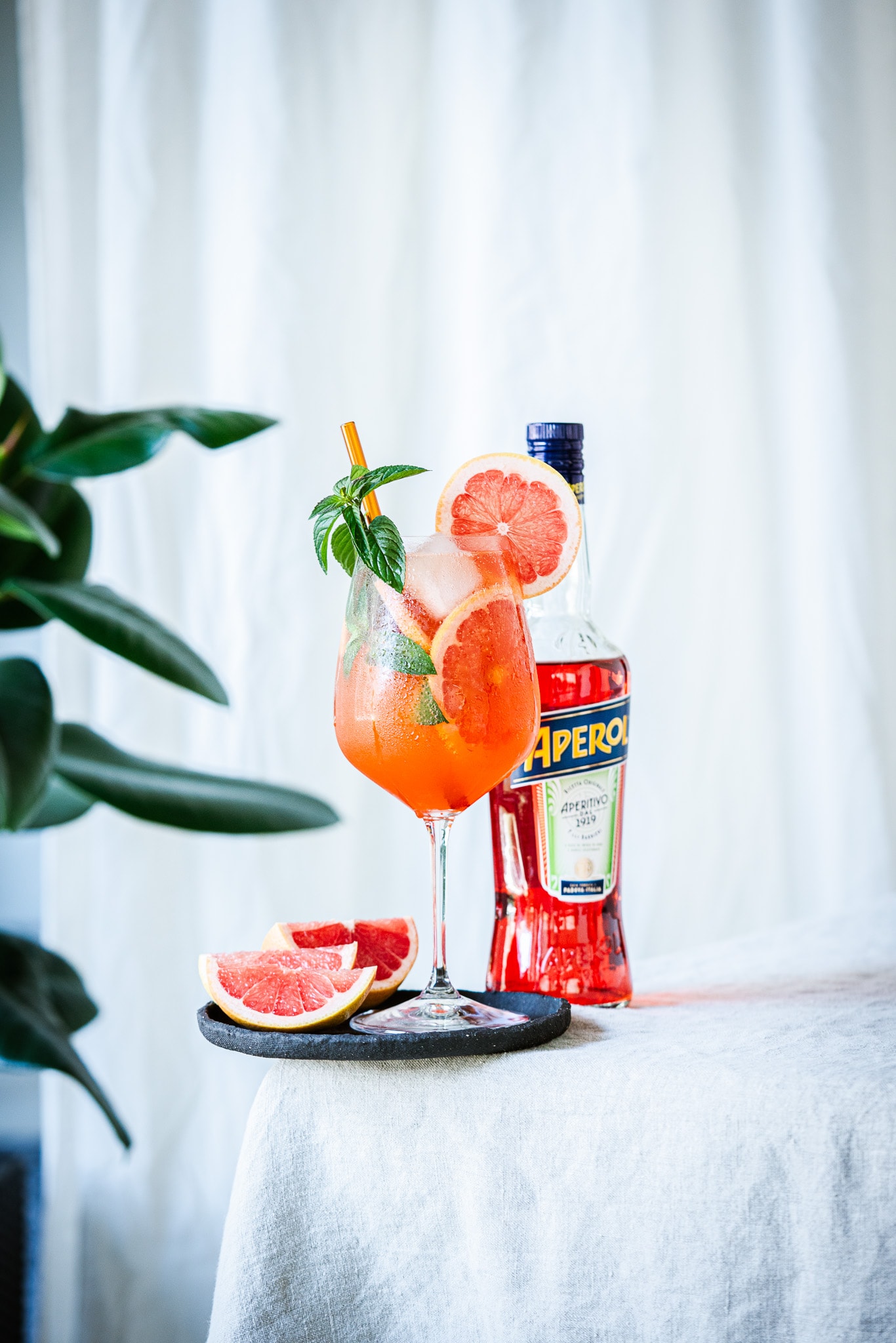Der Aperol kriegt durch die Grapefruit Limonade einen ganz besonderen Touch und die Minze sorgt für die nötige Frische. Perfekt für die lauen Sommerabende oder einfach, um einen Hauch Sommer auf den Balkon zu bringen. Ich genieße ihn am liebsten mit guten Freunden und Familie. Schmeckt aber auch alleine großartig – besonders nach einem anstrengenden Arbeitstag!