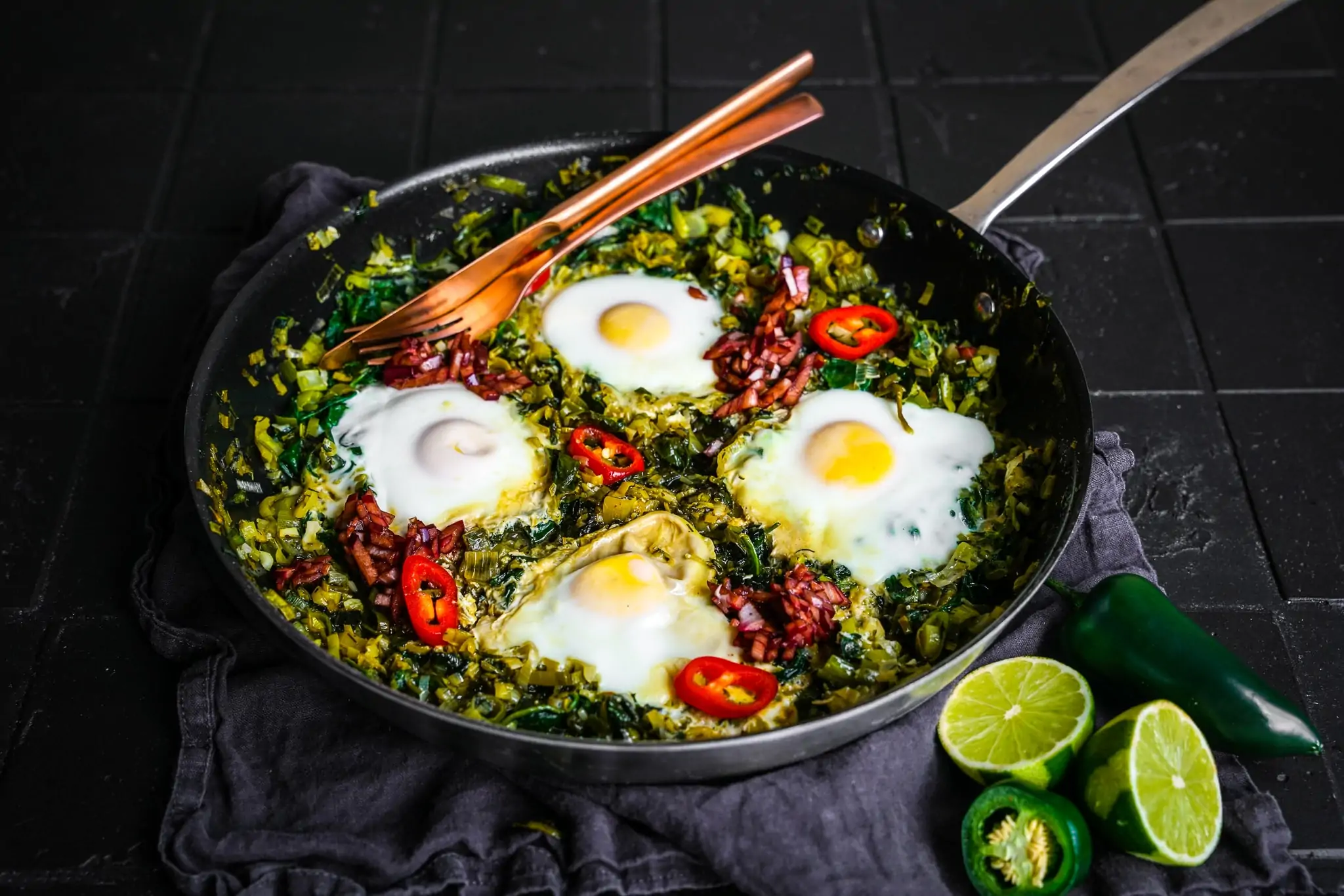 Gerade das grüne Shakshuka wird viel zu selten zubereitet, wenn man mich fragt. Es ist die perfekte Gelegenheit, etwaige Gemüsereste aufzubrauchen und nach einer durchzechten Nacht mindestens genauso hilfreich wie das rote Original. Wunderbar würzig, scharf und im Handumdrehen hergestellt. Unbedingt ausprobieren, du wirst es nicht bereuen.