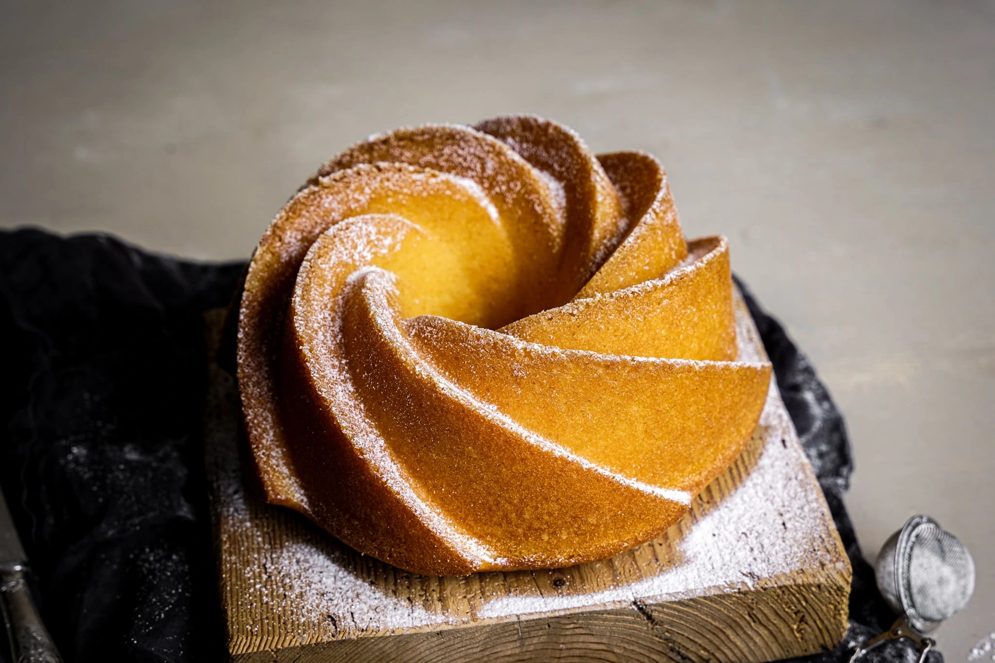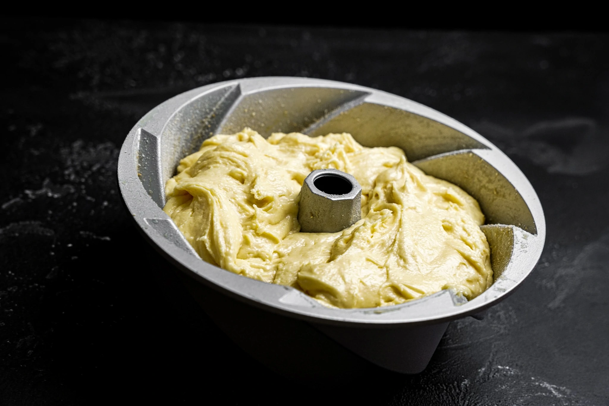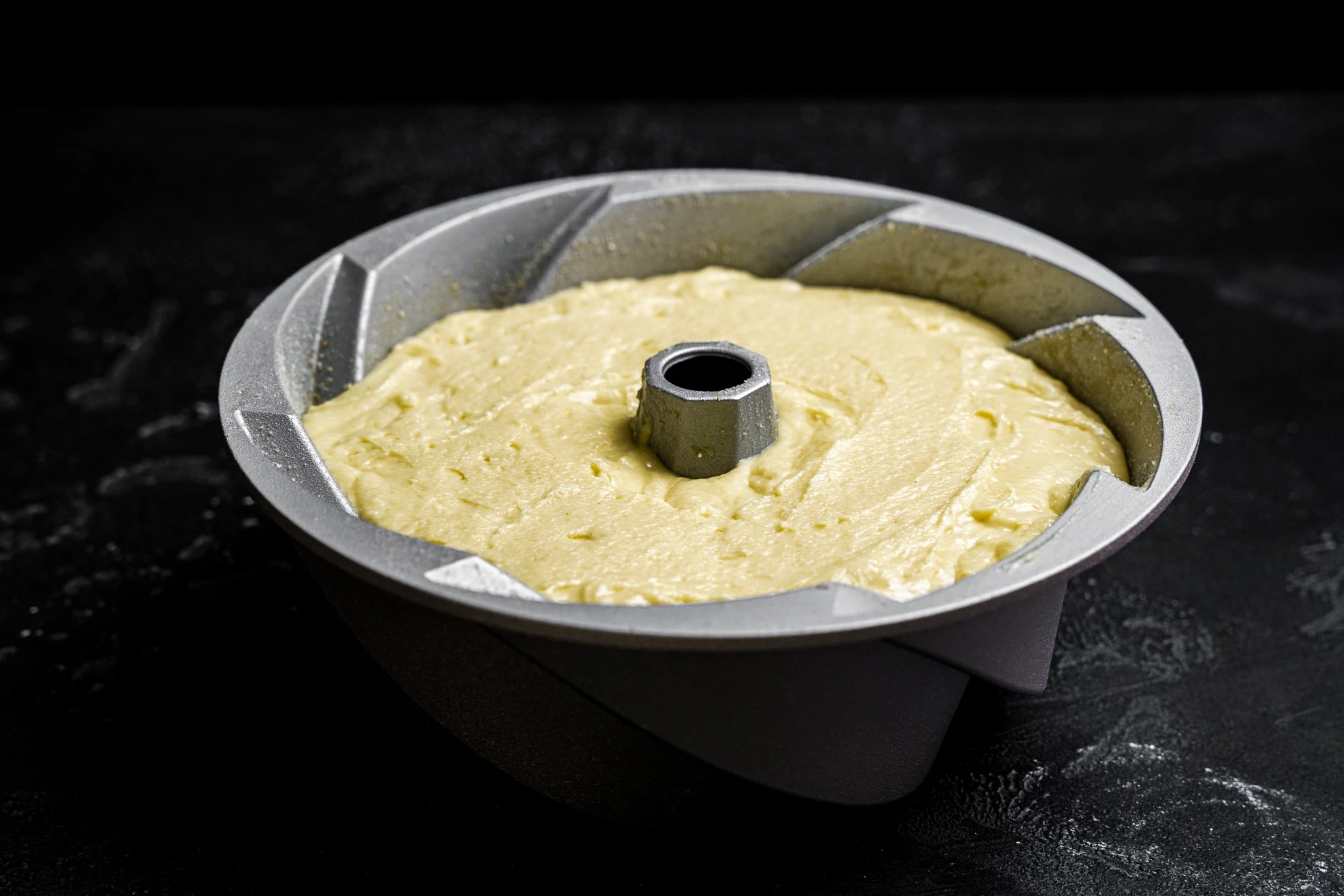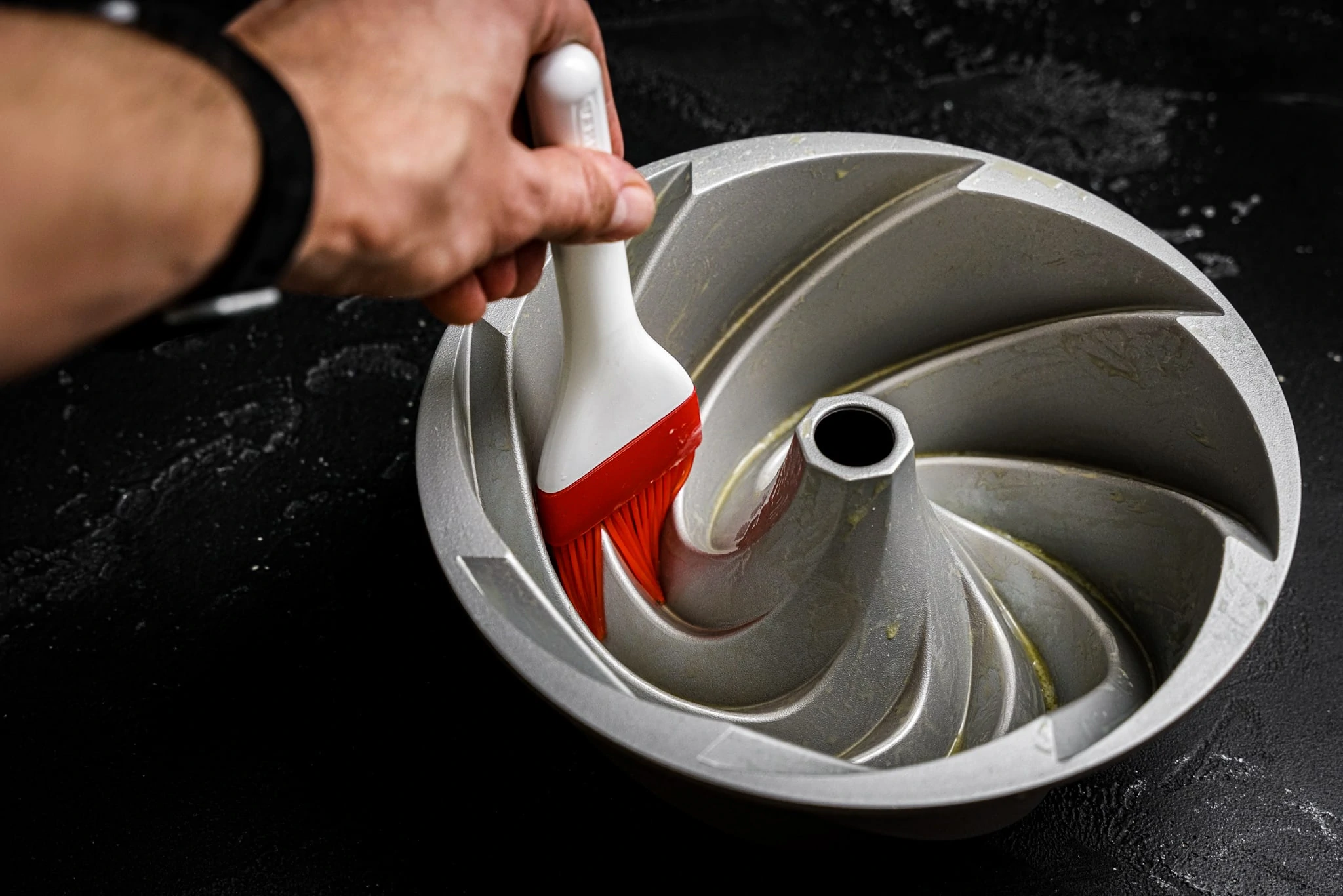 Deine Gugelhupfform für 30-60 Sekunden in den Ofen stellen und gleich wieder rausnehmen – jetzt ist sie schon warm, aber man kann sie noch angreifen.