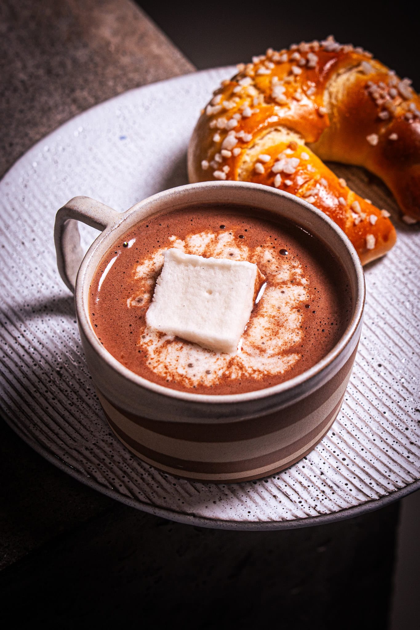 Die Marshmallows sind alles andere als schwer zuzubereiten und dabei wunderbar fluffig und süß – perfekt, um in der heißen, cremigen Schokolade zu schmelzen und sie leicht zu süßen. Dazu noch luftige, buttrige hausgemachte Brioche Kipferl zum Tunken und die Welt schaut gleich ein bisserl besser aus. Eine Kombination, die nicht nur Kinderherzen höher schlagen lässt, auch Erwachsene können hier kaum widerstehen. Zurecht, wenn man mich fragt.
