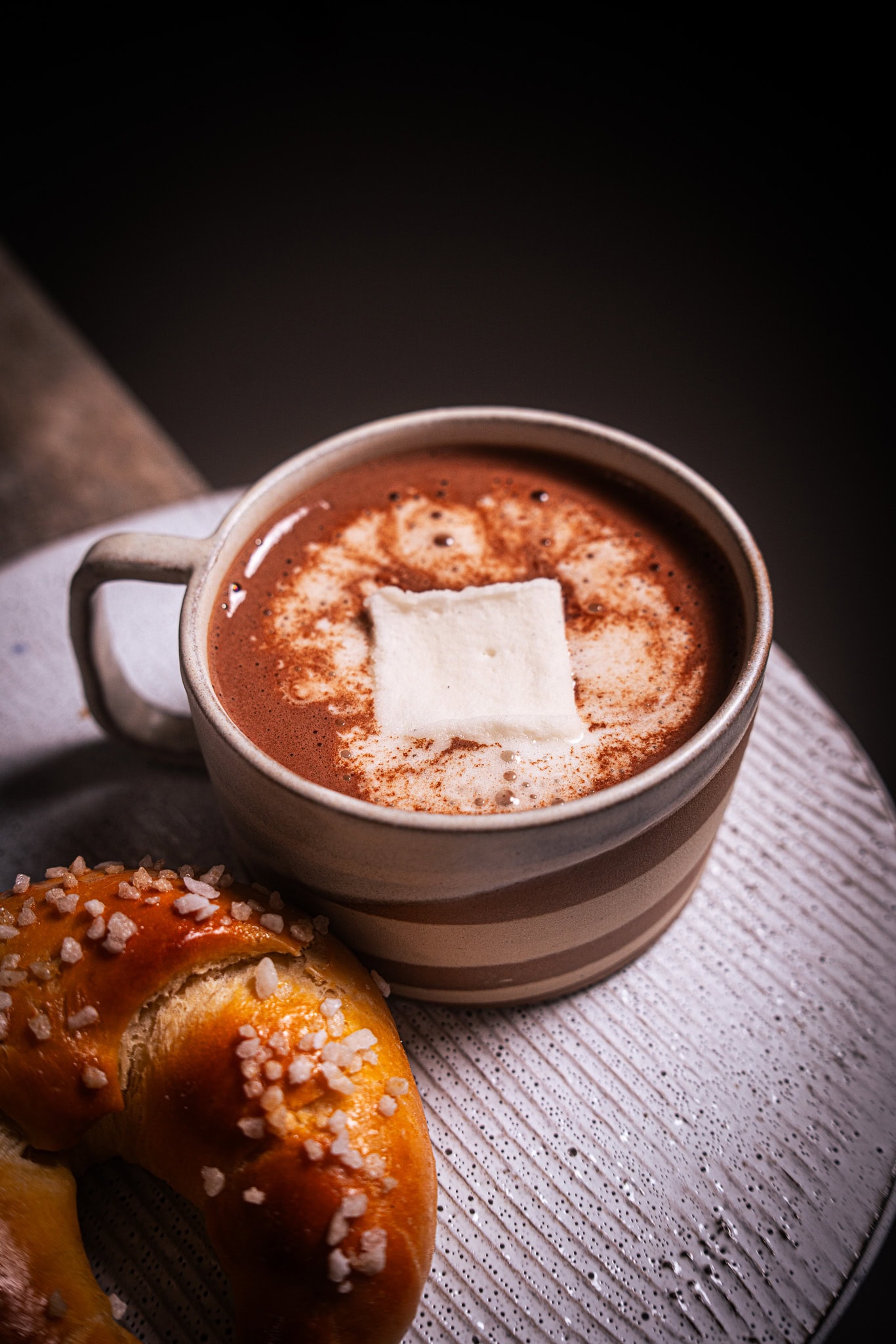 Ein Marshmallow hineingeben und darin schmelzen lassen, das süßt deine heiße Schokolade noch etwas nach.