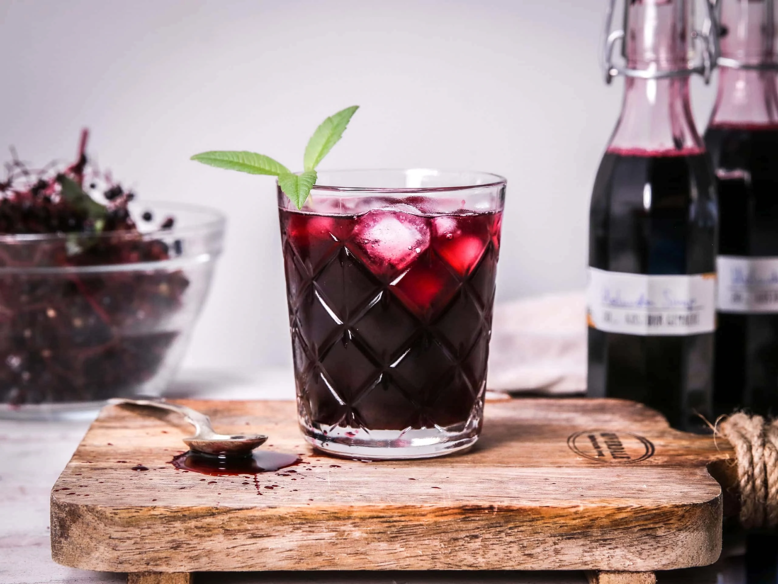 Egal ob mit Soda, am Eis oder im Gin Tonic – schwarzer Holundersaft passt einfach immer!