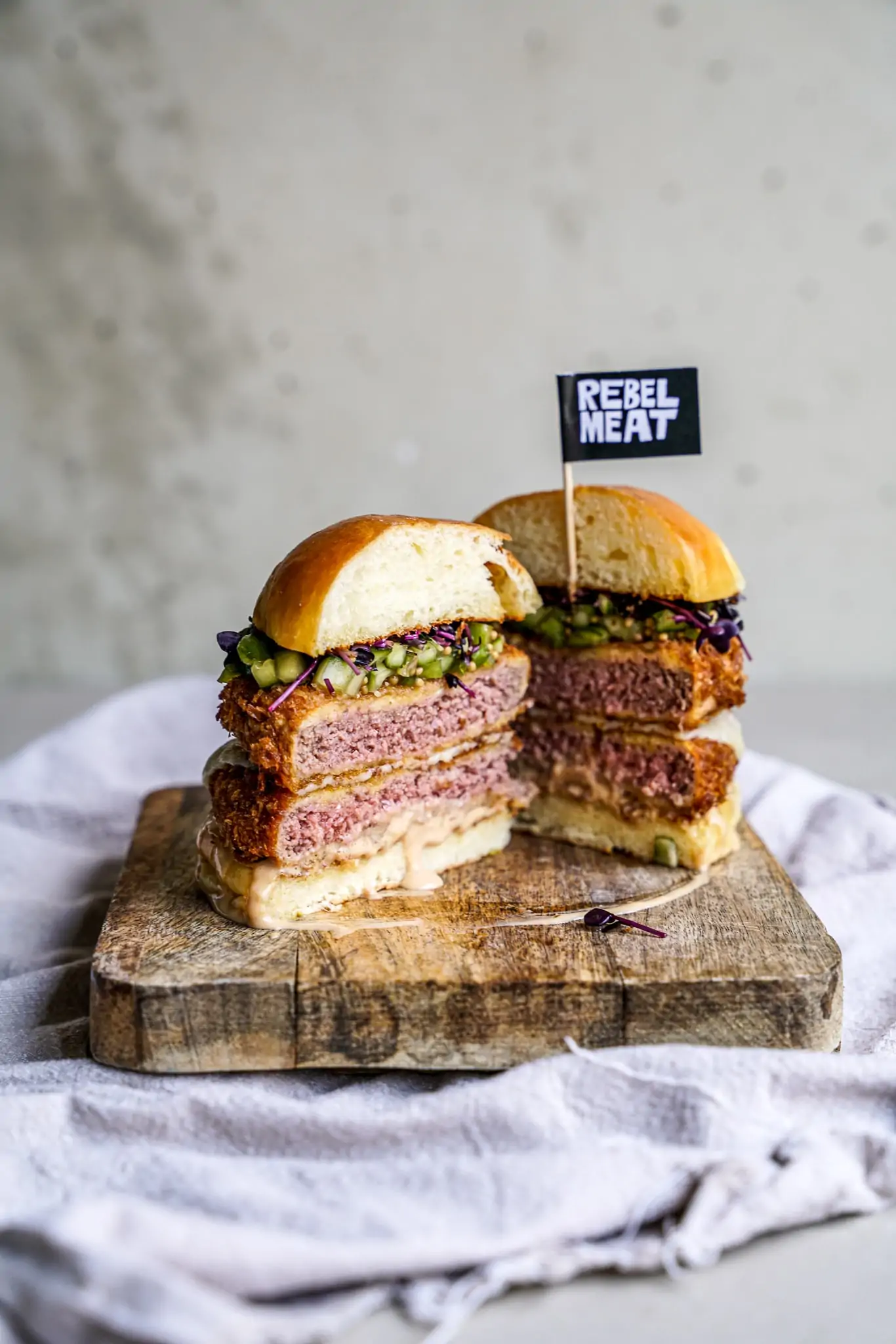 In diesem Falle habe ich meine Burger-Patties übrigens mit Rebel Meat hergestellt. Das besteht zu 50 Prozent aus österreichischem Fleisch und zu 50 Prozent aus Gemüse. Ein sehr cooles Konzept, um den eigenen Fleischkonsum ordentlich zu reduzieren und dabei nachhaltige Produktion zu fördern. Lieben wir!
