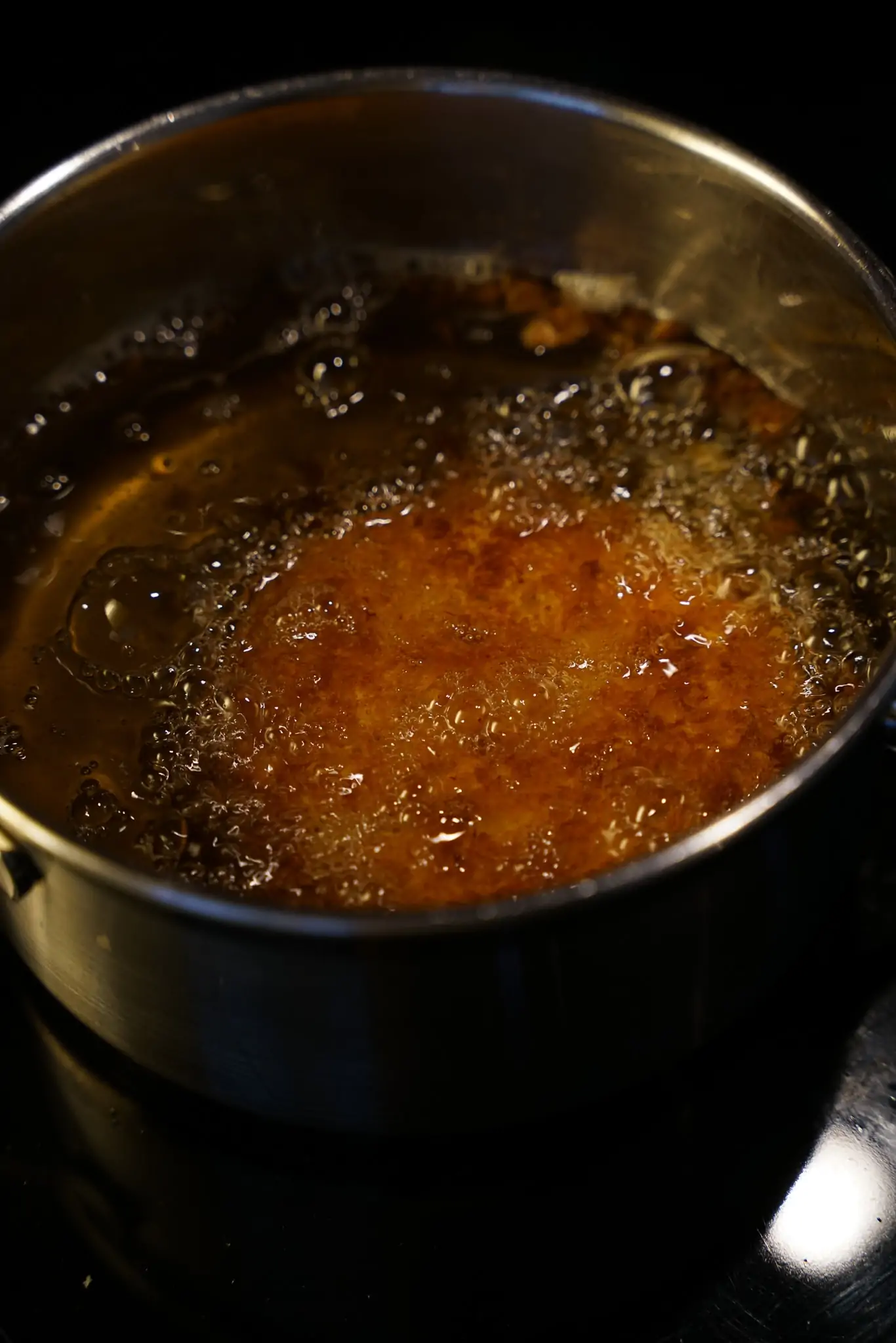 Erhitze genügend Pflanzenöl in einem kleinen Topf auf 180 °C.