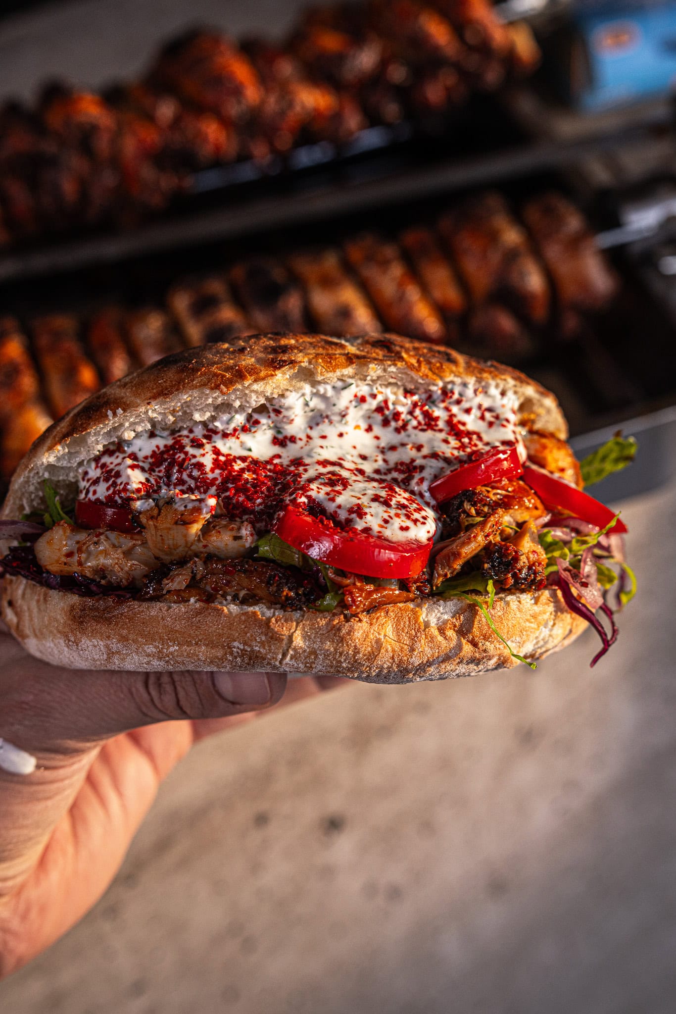 Gleich vorab: Höchste Qualität, vor allem bei der Auswahl des Fleisches, sind wie immer das A und O. Ich persönlich verwende in dem Fall Hühnerfleisch für die Herstellung dieses Klassikers. Du kannst aber natürlich auch auf Lamm oder Rindfleisch zurückgreifen. Das Brot backe ich frisch. Dabei greife ich bei der Herstellung von Wraps auf mein Naan-Rezept zurück und für Fladenbrote auf meine Pizzateige. Die Gewürzmischung stelle ich übrigens ebenfalls selbst her und bewahre sie einfach in einem praktischen Schraubglas für die nächsten Kebab-Sessions auf. Für diesen Kebab lässt sich übrigens auch alles super vorbereiten – einfach alles in Gläser füllen und deine Gäste einfach selbst ihre perfekte Variante zusammenstellen lassen!