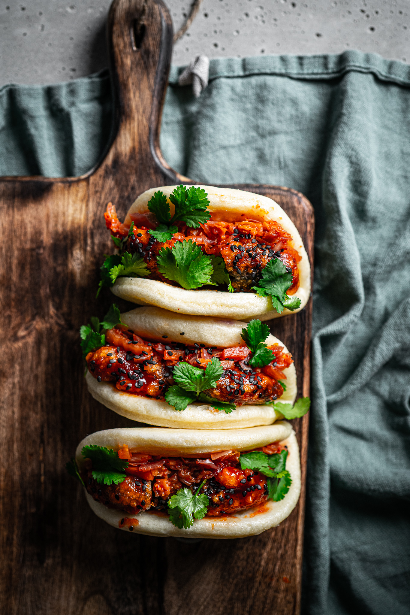 Ich weiß, dass Korean Fried Chicken Baos zurecht als absoluter Klassiker gelten und begeisterte Fleischesser meiner vegetarischen Variante gegenüber etwas skeptisch eingestellt sein werden. War ich auch, musste meine Meinung aber umgehend revidieren. Knusprig, zart, aromatisch und kein Stück weniger g’schmackig wie die klassischen Baos kommen sie daher. Einfach in der Zubereitung und mal ganz was anderes. Sei also kein Schwammerl, sondern iss lieber welche!
