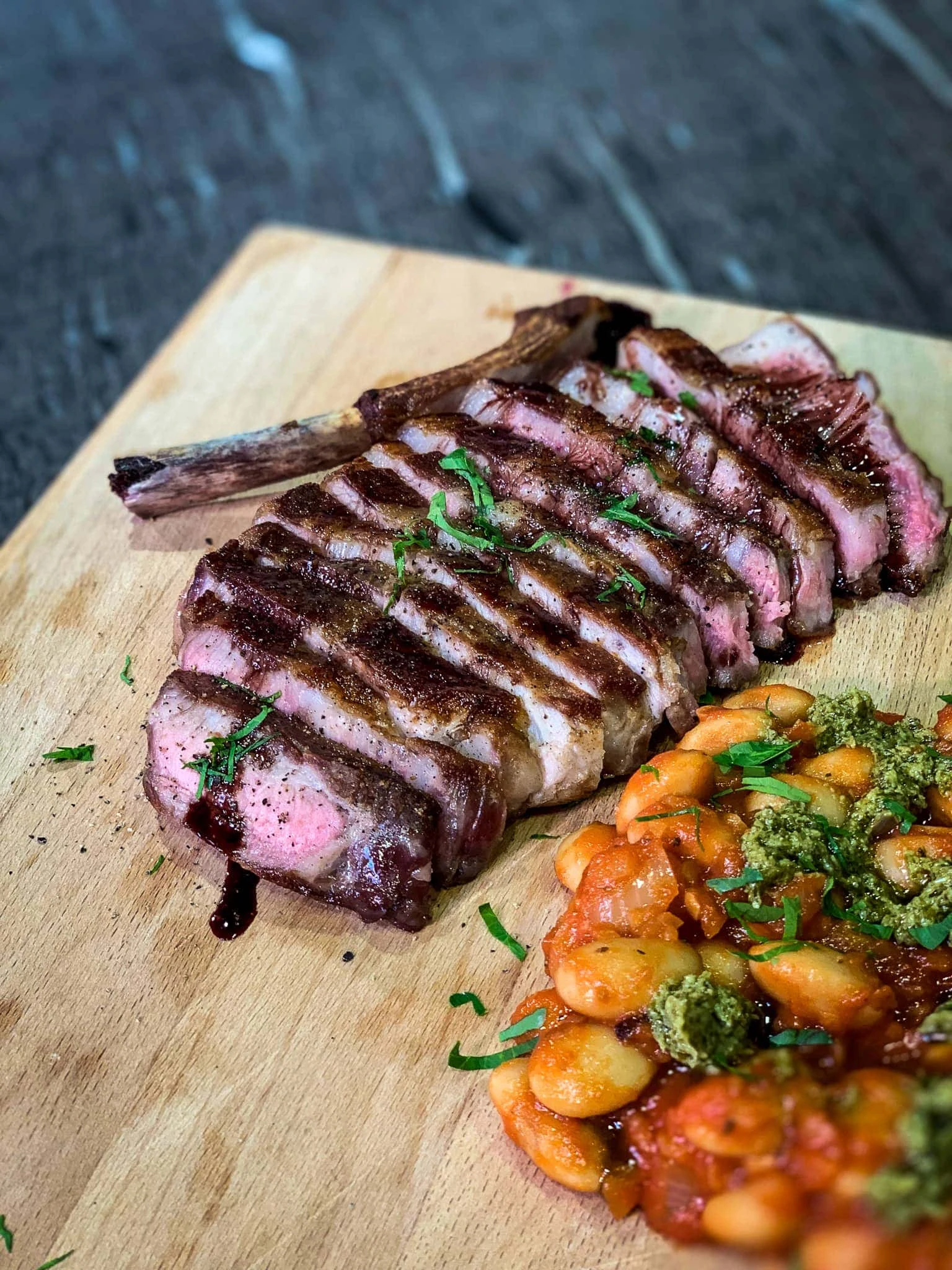 Kotelette erfreut sich nicht umsonst einer so großen Beliebtheit: Intensiver Geschmack, saftige Textur und gleichsam einfach wie vielseitig in der Zubereitung, überzeugt es besonders beim Grillen einfach auf ganzer Linie. Aber auch aus der Pfanne und/oder paniert machen Koteletts eine hervorragende Figur. Meine Variante mit würzigem Saft und aromatischen Pesto-Bohnen kann sich aber ebenfalls mehr als sehen lassen und sorgt gekonnt für jede Menge Abwechslung, ohne auf die Vorteile dieses Klassikers zu verzichten.