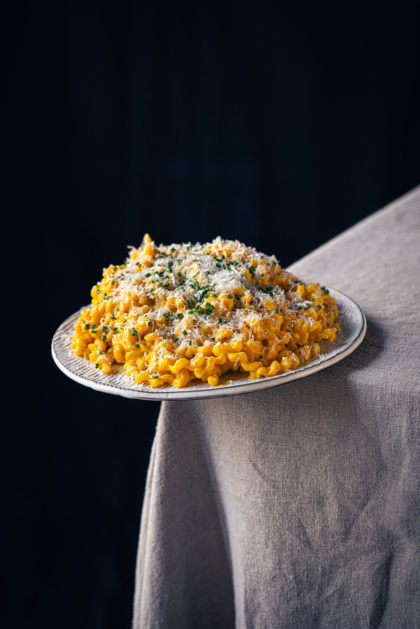 10 Minuten bevor der Kürbis soweit ist, ist es an der Zeit, deine Pasta in gesalzenem Wasser al dente zu kochen. Heb unbedingt ein Glas des Nudelwassers auf, bevor du die Nudeln abgießt!