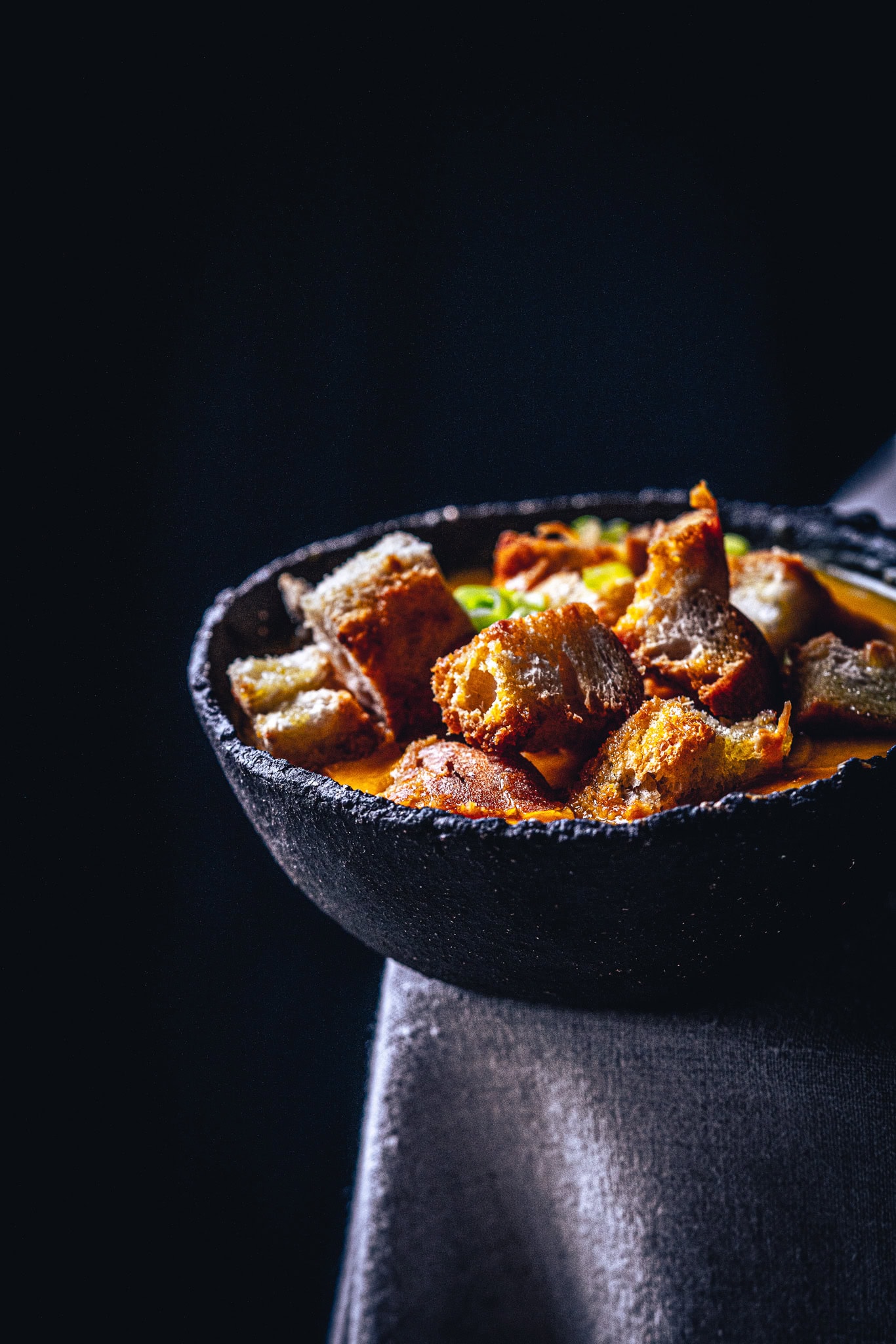Suppe anrichten, mit Olivenöl beträufeln und mit Croûtons servieren. Mahlzeit!