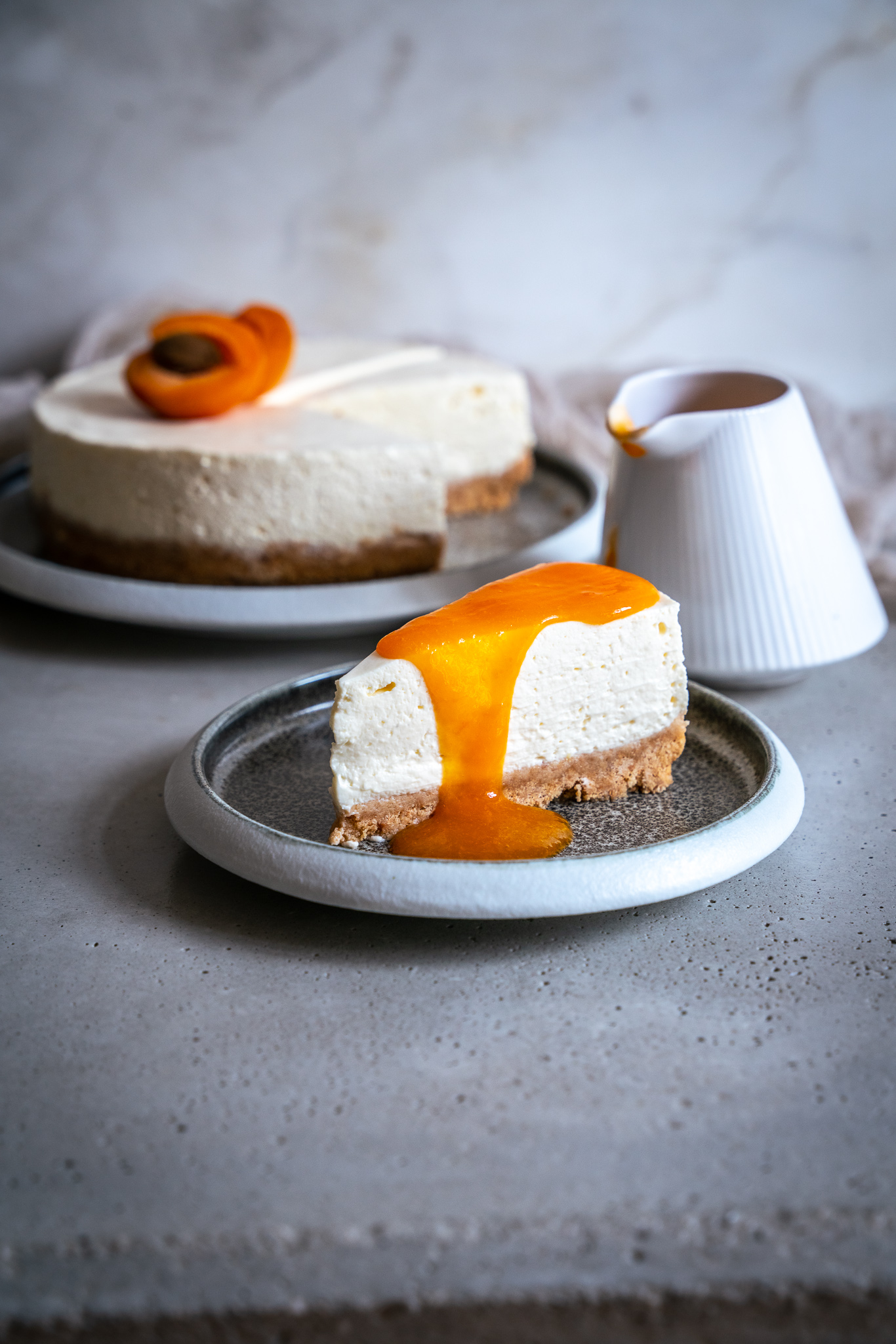 Marillenkuchen mal anders: Dieser No-bake Cheesecake mit Marillensauce ist ein perfektes Sommerdessert, das sich wunderbar vorbereiten lässt und für das der Ofen auch gerne mal kalt bleiben darf. Optimal, denn wir haben hier keine Klimaanlage.