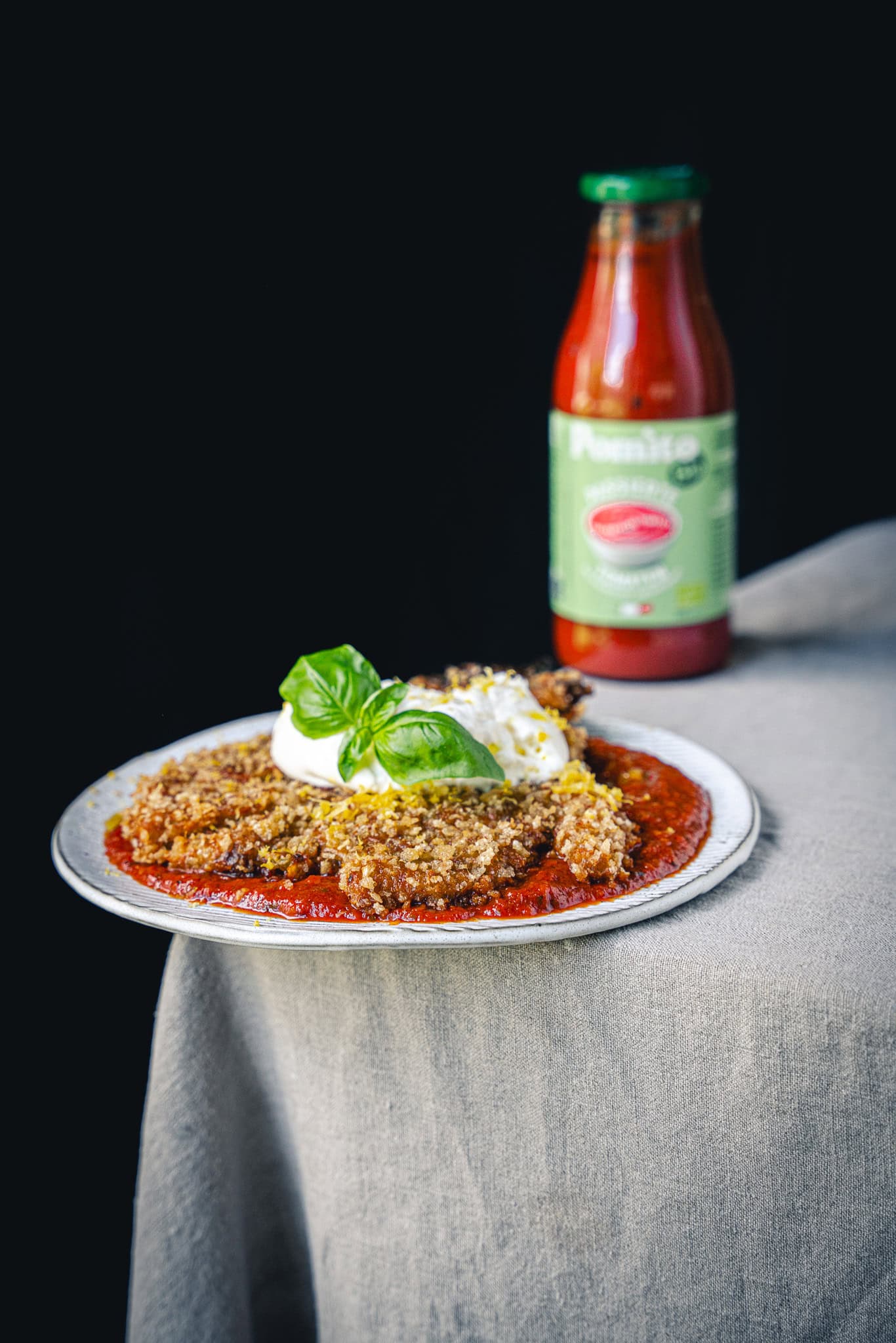 Willkommen in einer Welt, in der Melanzani mal nicht nur Beilage, sondern endlich Protagonist sein darf! Vorhang auf für mediterrane Magie! Und zwar knusprig-paniert auf einem roten Teppich aus aromatischer Tomatensauce. Dazu eine Handvoll Parmesan und mediterrane Gewürze für den letzten Schliff – fertig ist ein absolutes Gedicht!