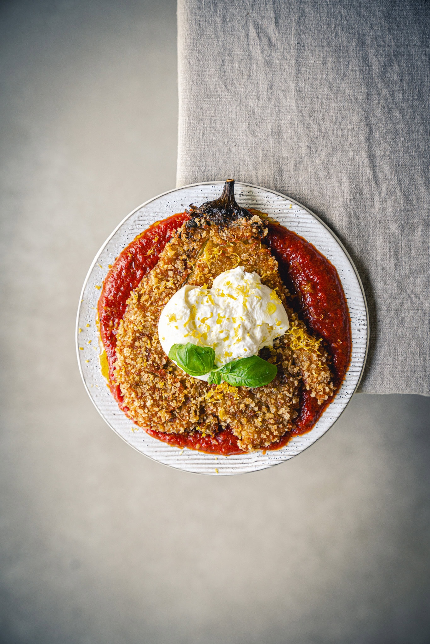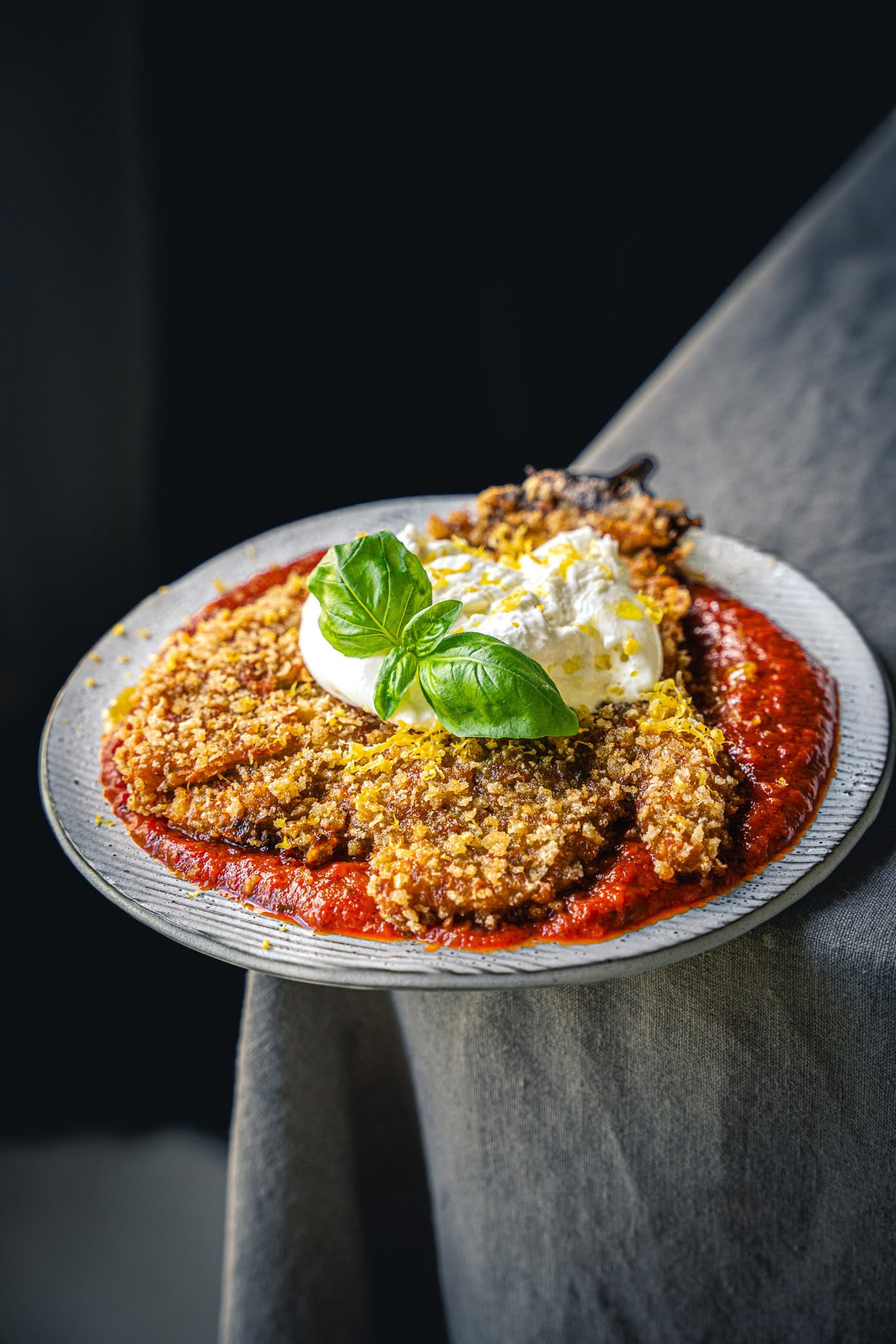 Diese Version des italienischen Klassikers spielt sowohl mit Texturen und Temperaturen. Die Melanzani, außen knusprig und innen butterweich, landet in einem Meer aus sanft gewürzter Tomatensauce. Oben drauf ein Stück kühle, cremige Burrata, die schon beim Anschauen schmilzt und mit würzigem Basilikum und frischen Zitronen für jede Menge Raffinesse sorgt. Diese Speise ist mehr als nur ein Gericht, sie ist eine Einladung zum Genießen und Feiern. Also, lass dir dieses Fest nicht entgehen und probier meine Melanzani-Milanese am besten noch heute!