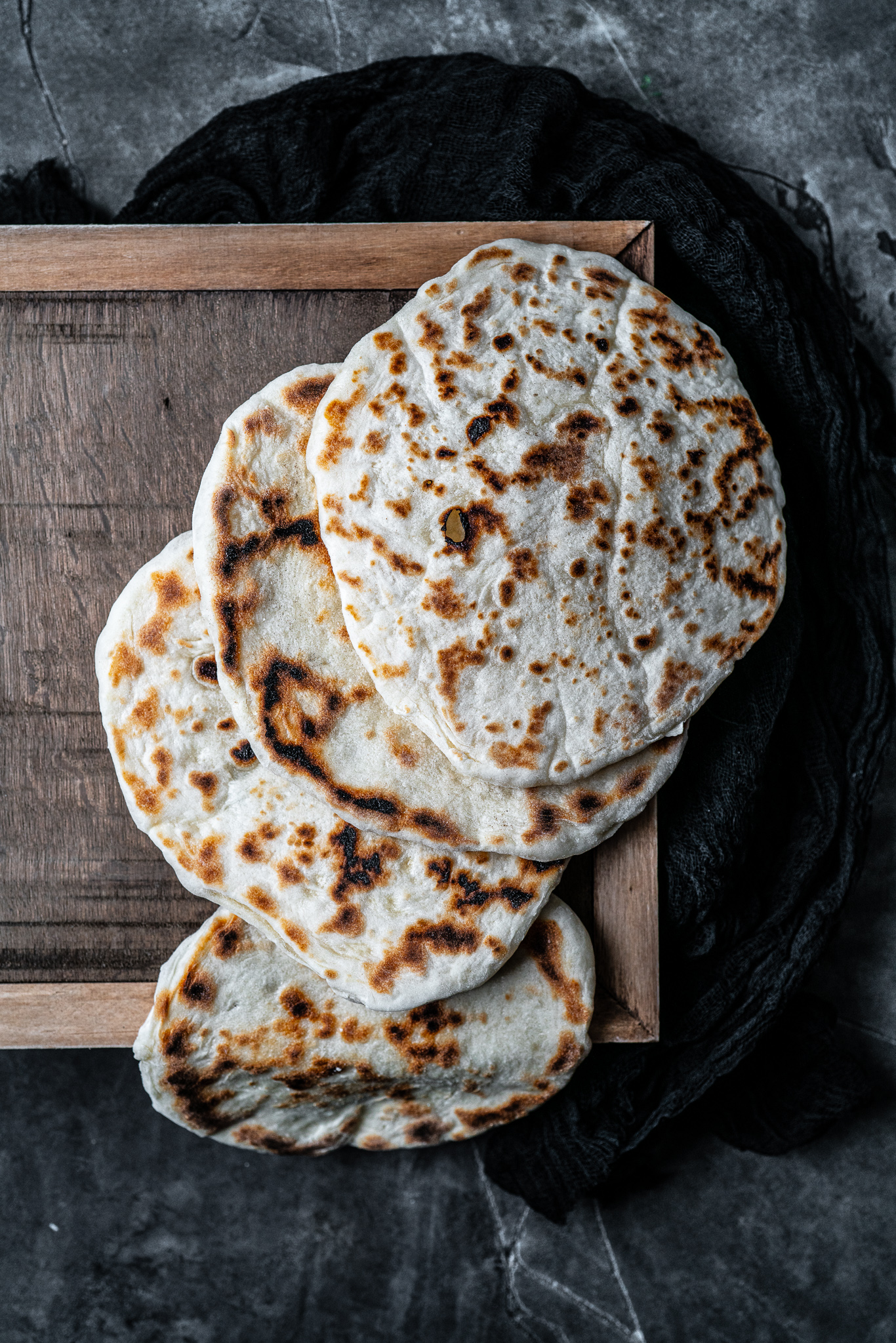 Bedecke die Naan-Brote zuletzt mit einem sauberen Geschirrtuch, bis sie zum Einsatz kommen.