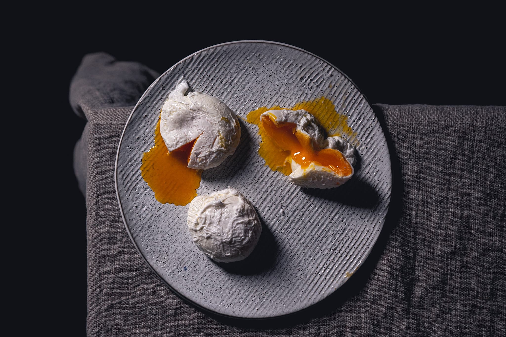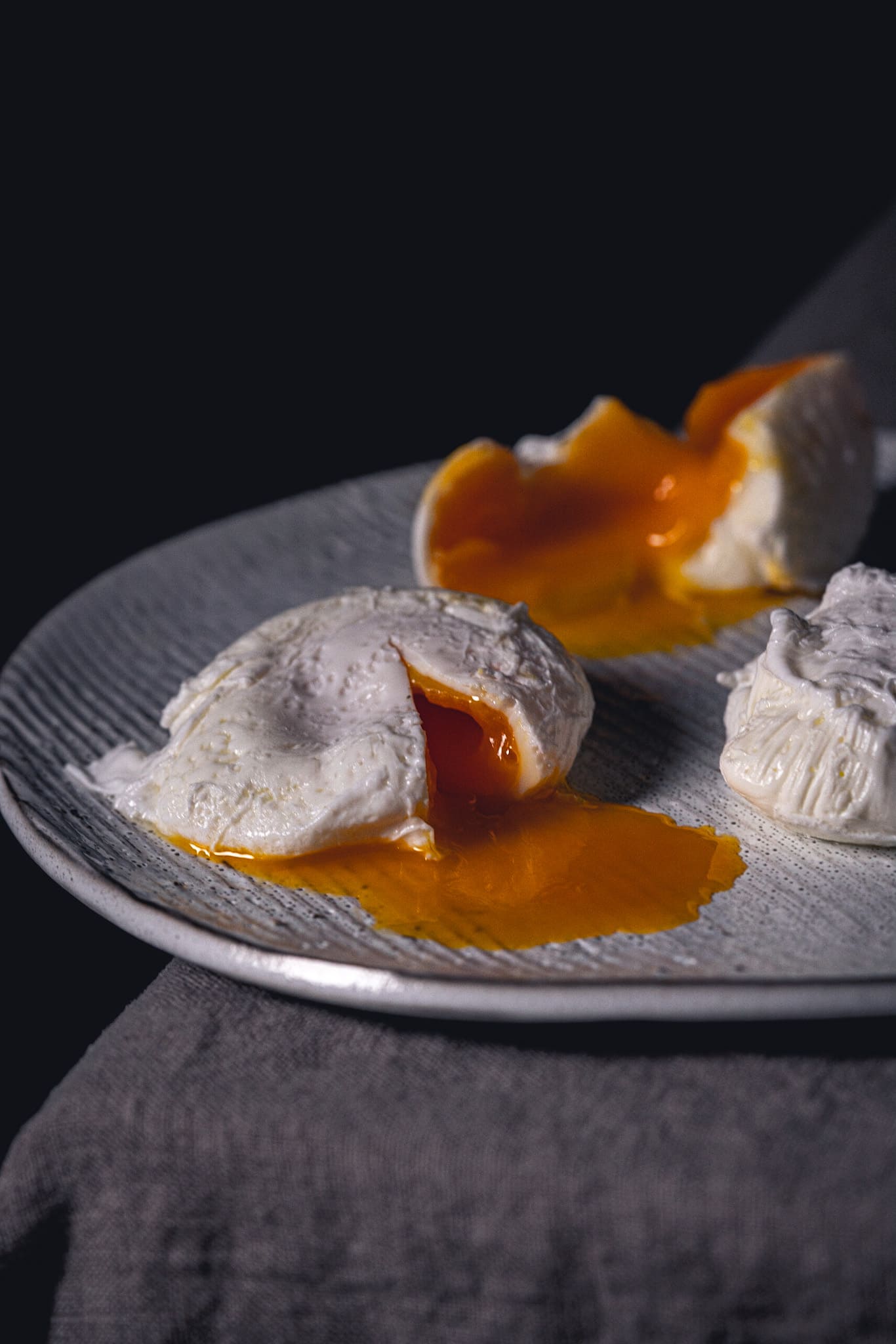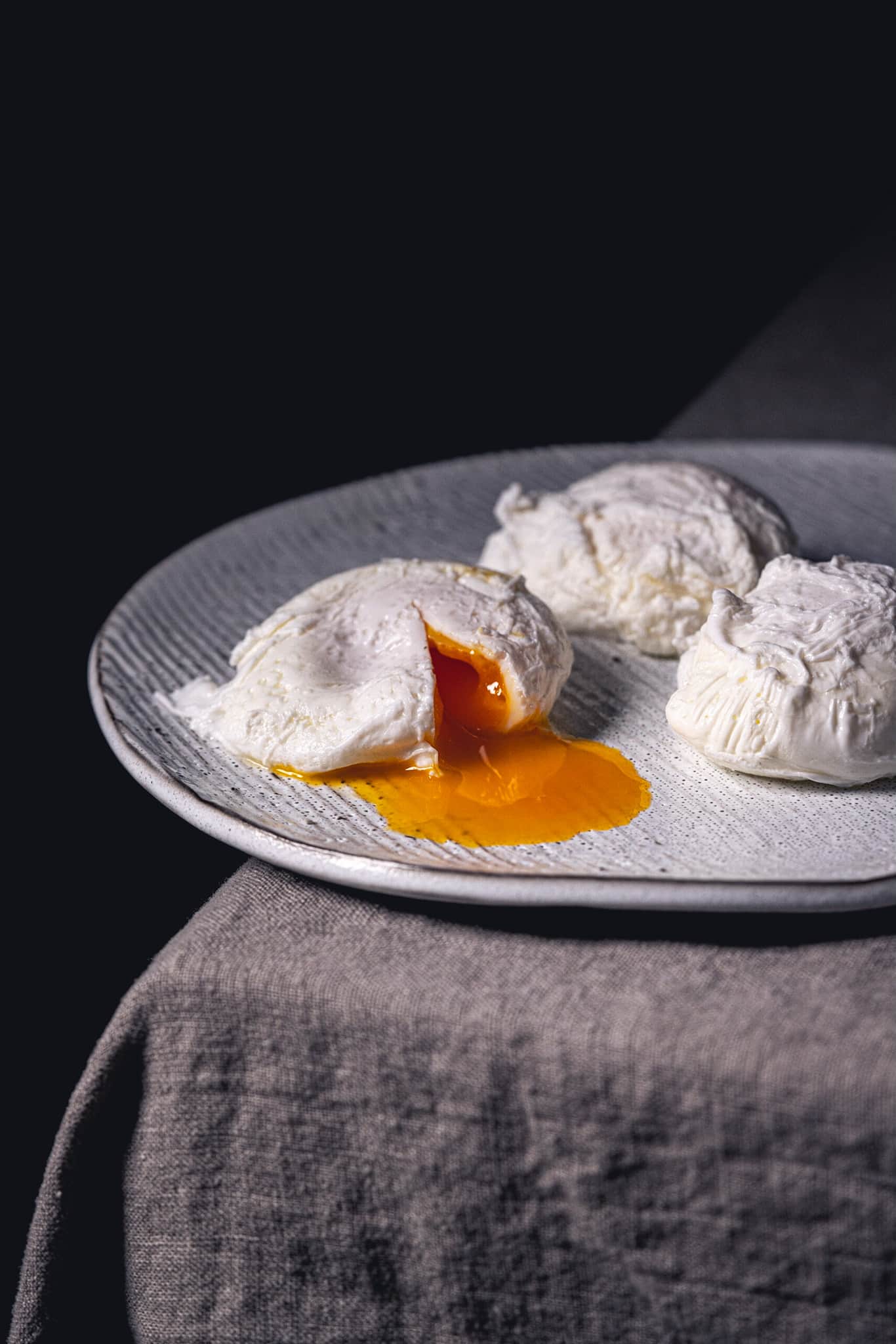 Vor Jahren hatte ich beiläufig mal aufgeschnappt, man solle kein Salz ins Wasser geben. Großes Danke darauf geht raus an die Person, an die ich mich leider nicht mehr erinnere. (Sorry!) Kurz recherchiert und ausgiebig getestet. Sowohl mit als auch ohne Salz. Das Ergebnis: Mit Salz lösen sich viel mehr „Flankerl“ aus dem Eiweiß. Kurz gesagt: Kein Salz – das pochierte Ei sieht am Ende einfach schöner aus.
