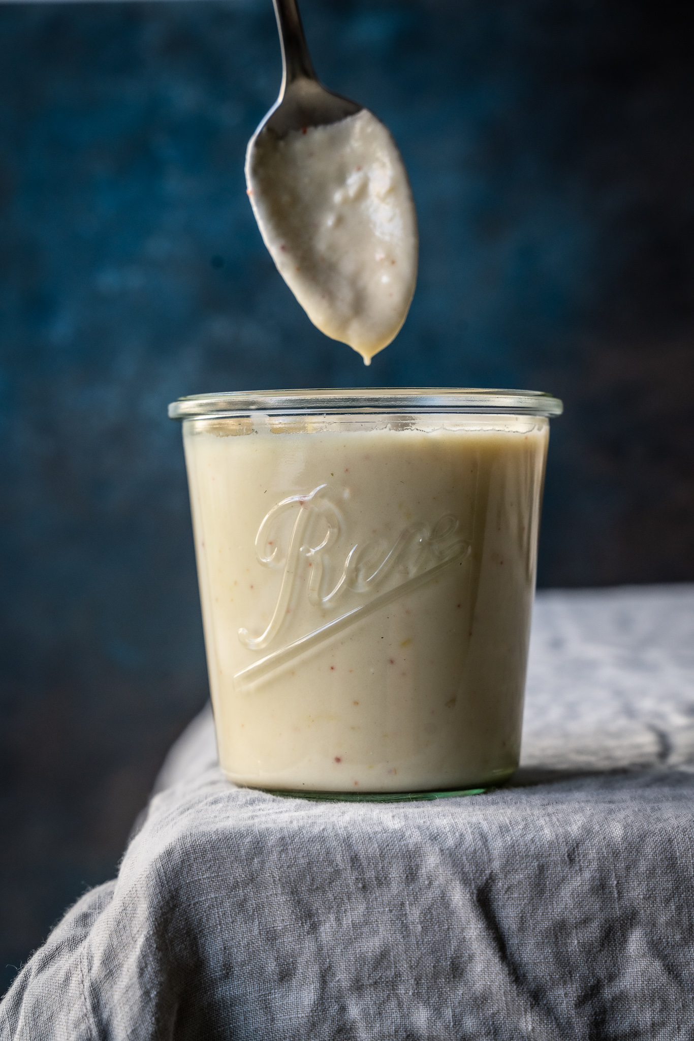 Diese Creme könnt ihr für Pizza Bianca oder auch euer Knoblauchbrot verwenden. In Sandwiches macht sich die einfache Pizza White Sauce aber auch ganz wunderbar!