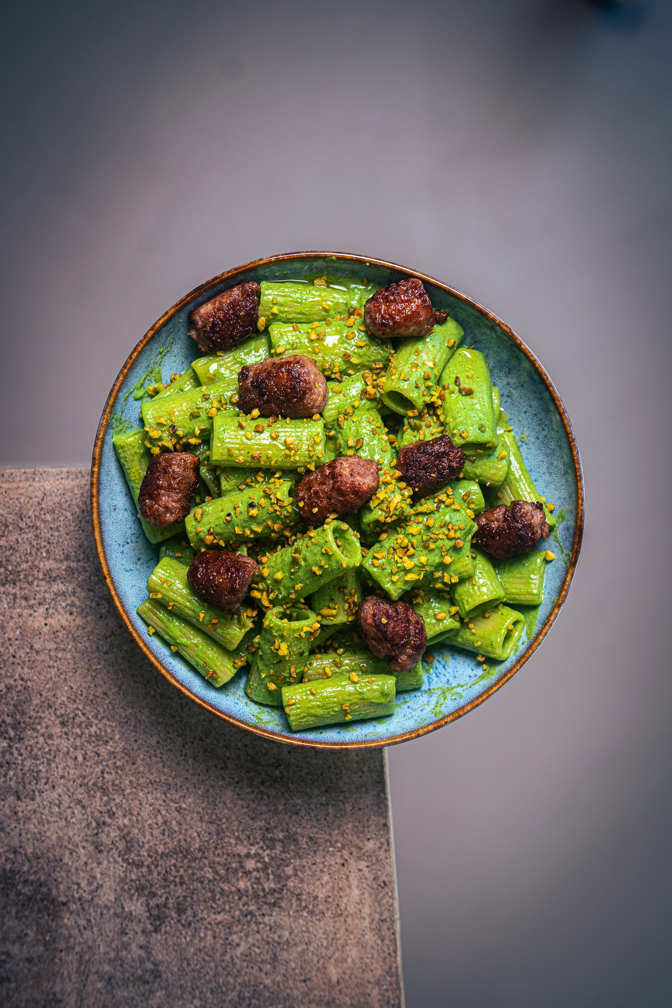 Aus wenigen hervorragenden Zutaten schaffst du damit im Handumdrehen ein würziges, cremiges Pastagericht, das dich auch beim Besuch von Gästen glänzen lässt, ohne die Küche im Chaos versinken zu lassen. Das knusprige Topping aus Salsiccia-Bällchen und gehackten Pistazien machen es zu etwas ganz Besonderem. Unter uns: Funktioniert auch am Gründonnerstag als perfekte Alternative zum klassischen Spinat!