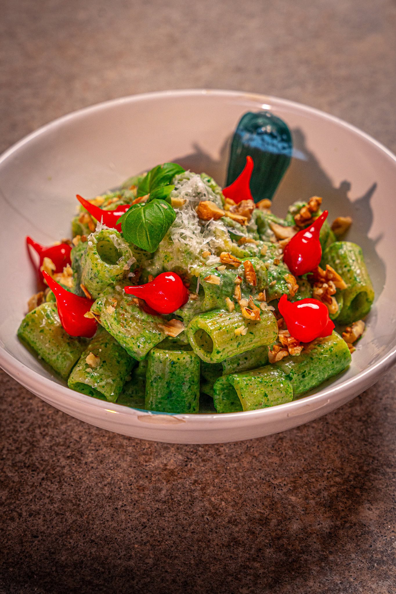 Aus wenigen hervorragenden Zutaten schaffst du damit im Handumdrehen ein würziges, cremiges Pastagericht, das nicht nur dich, sondern auch deine Gäste begeistern wird. Ganz ohne die Küche dabei im Chaos versinken zu lassen. Das fruchtige und crunchy Topping aus Schnabelpaprika und gehackten Walnüssen macht diese Pasta Verde es zu etwas ganz Besonderem. Und das Beste: Babyspinat bekommst du fast das ganze Jahr – dieses Gericht funktioniert also weit über die Saison hinaus.