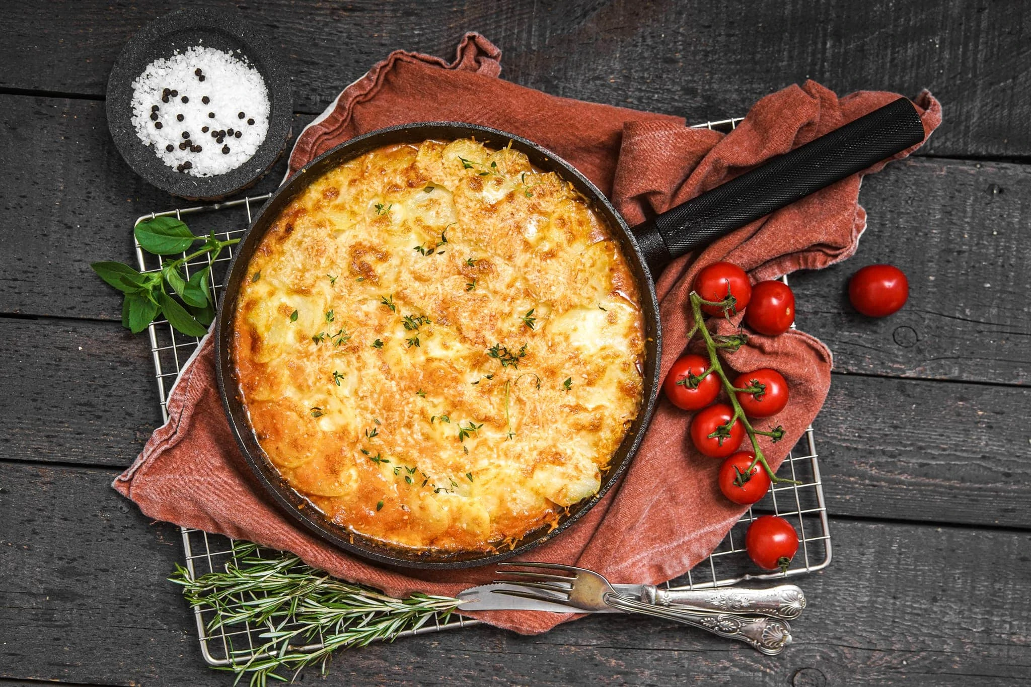 Rotwein-Ragout mit herzhaftem Kartoffelgratin überbacken – muss ich noch mehr sagen? Dachte ich mir. Wie könnte es auch anders sein? Würziges Ragout mit Faschiertem vom Rind trifft auf geschmacksintensive Salsiccia, die diesem Gericht gemeinsam mit Rotwein und Rindsuppe richtig schön Kraft verleiht. Perfektes Comfort-Food an kalten Tagen!