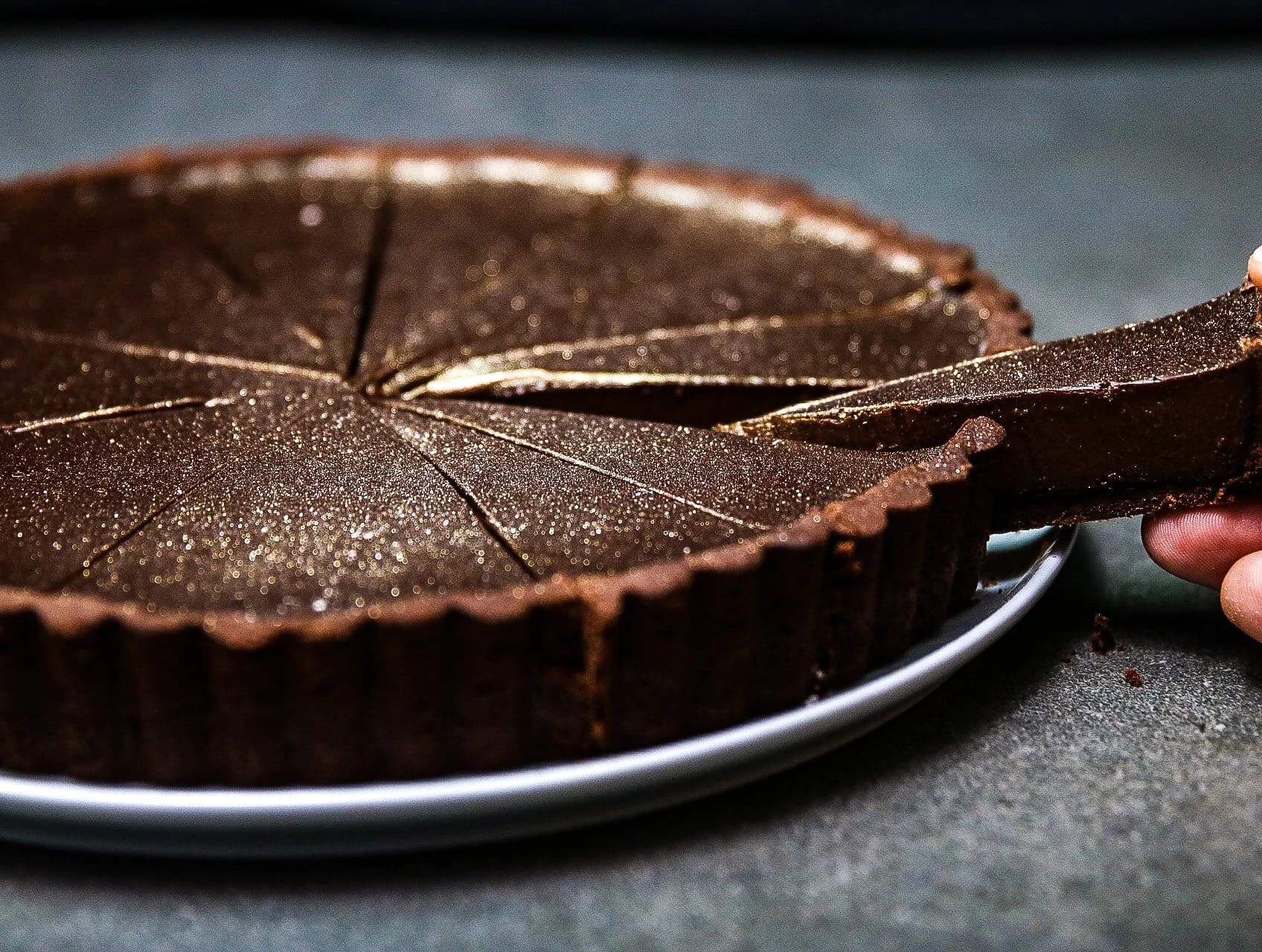 Die Schokoladentarte danach komplett auskühlen lassen und genießen.