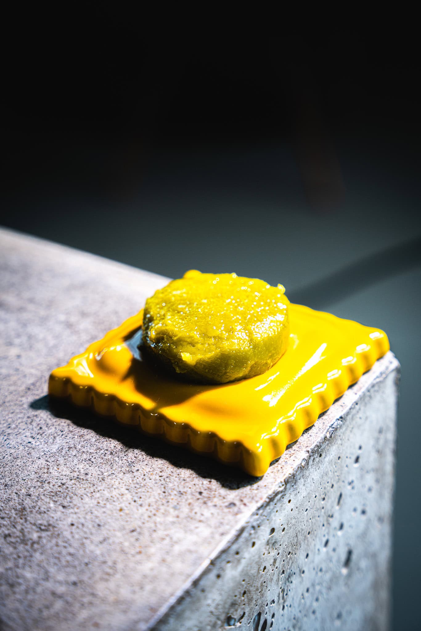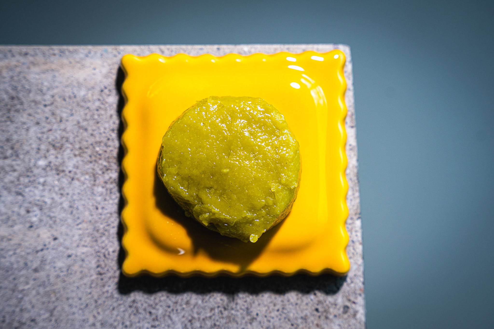Olivenöl in sehr kleinen Mengen nach und nach dazugeben und immer weiter mörsern.