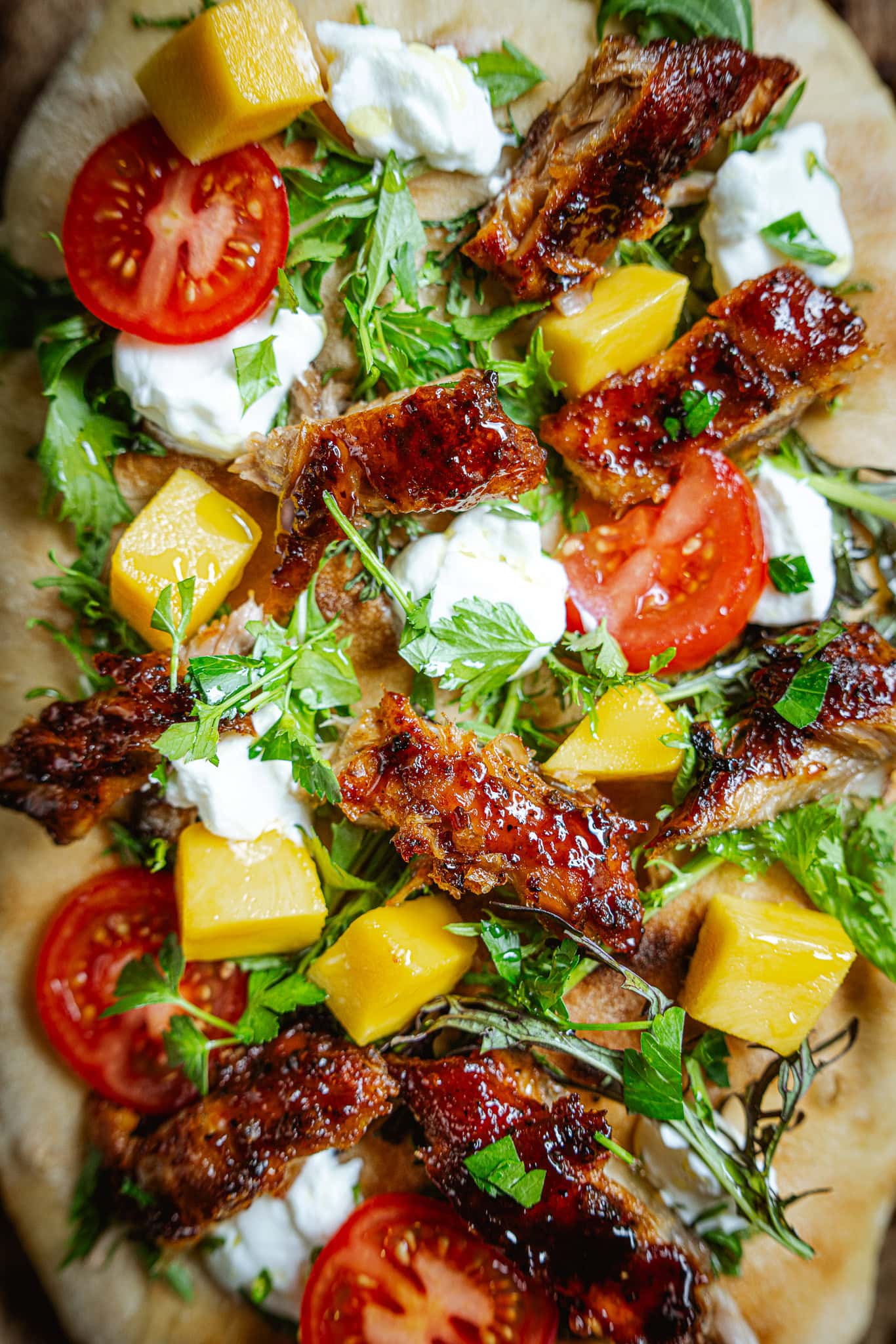 Mein Spareribs-Flatbread mit süß-würziger Almdudler-Glasur vom Grill ist das perfekte Gericht für alle, die Bock auf ausgefallenes BBQ haben, ohne großartigen Aufwand zu betreiben zu müssen. Die zarten Ribs in umwerfender Glaze schmecken außerdem einfach umwerfend und werden deine Gäste restlos begeistern. Am besten reichst du sie übrigens mit frischem Obst und Gemüse der Saison (gerne auch gegrillt) sowie cremiger Burrata!
