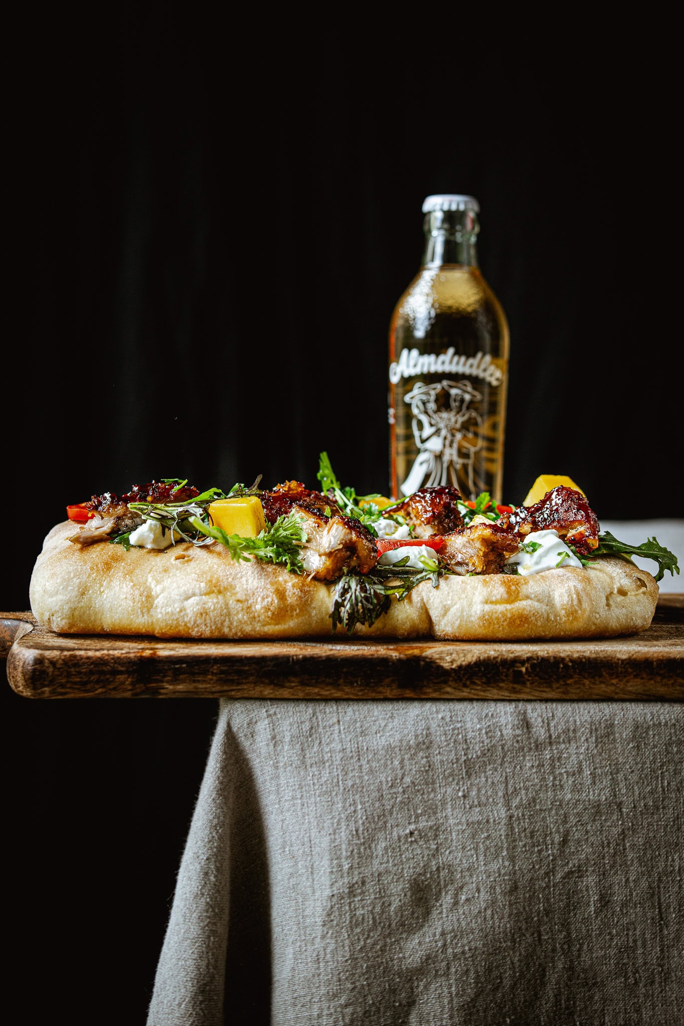 Ricotta on top – fertig ist das Spareribs-Flatbread mit Almdudler Glaze.