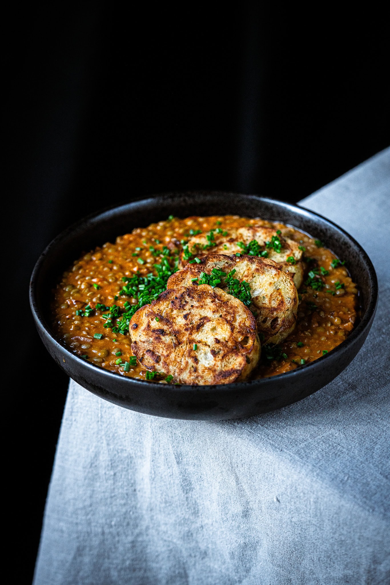 Cremige Linsen, würziger Speck und dazu ein paar fluffige Serviettenknödel und ich bin im kulinarischen siebten Himmel! Diese Speise schmeckt nicht nur frisch, sondern auch aufgewärmt ganz fantastisch und wer Linsen mit Knödel noch nicht probiert hat, sollte dies unbedingt rasch nachholen. Sind auch gar nicht schwer zuzubereiten!