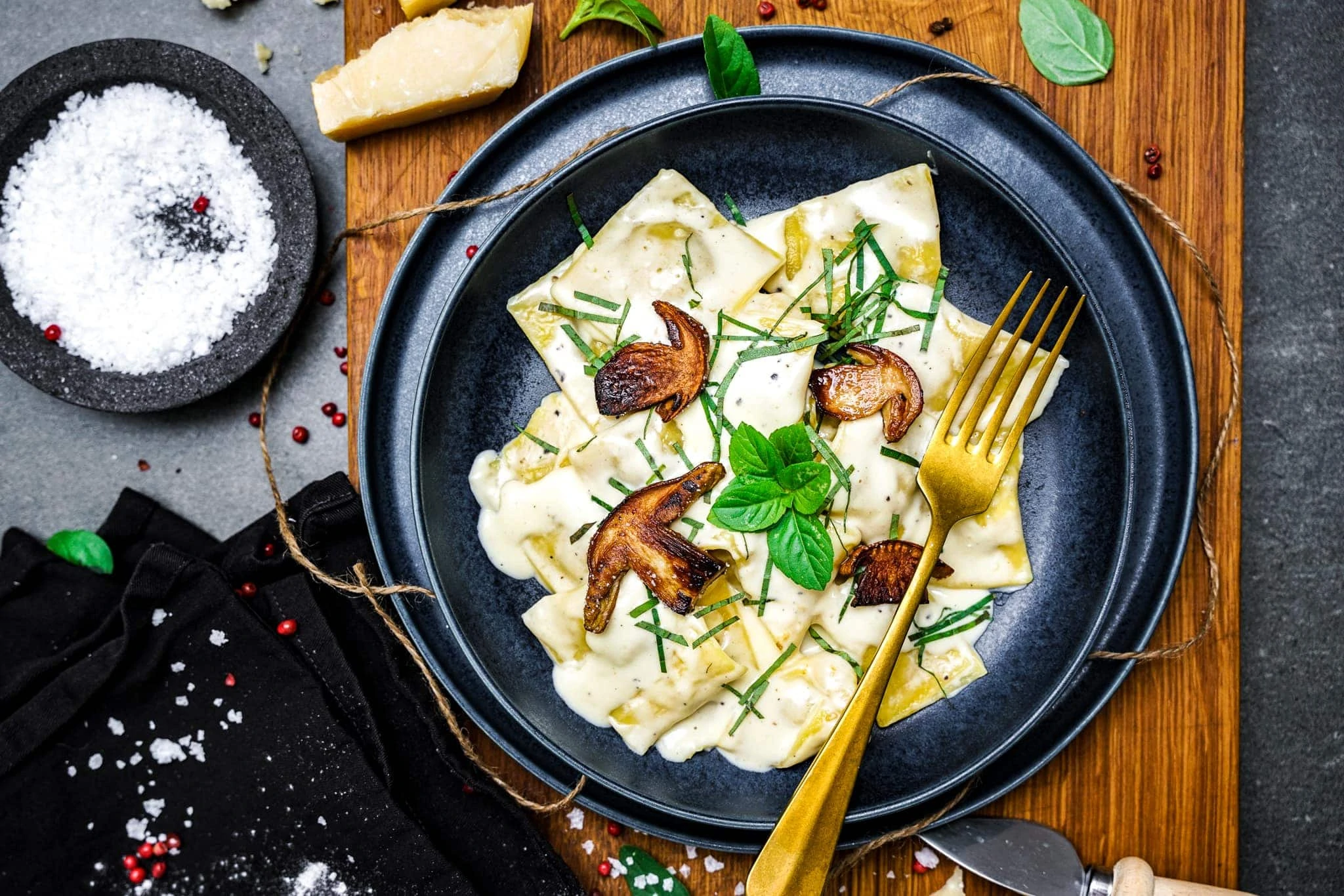 Ob Steinpilz-Tortellini, Steinpilz-Ravioli oder Fettuccine mit Steinpilz-Sauce: Zum Welt-Pasta-Tag gibt es heute Pasta mit Steinpilzen! Ein absoluter Klassiker, der in verschiedensten Formen eine unglaublich gute Figur macht. Nebst Steinpilz-Tortellini habe ich heute einen weiteren Favoriten im Gepäck: Steinpilz-Ravioli. Und zwar handgemacht. Im Pastamaker ist der Teig im Handumdrehen zubereitet – egal, für welche Sorte du dich entscheidest – und wer so fleißig Steinpilze gesammelt hat wie wir, kommt in Windeseile zu einem großartigen Pasta-Gericht auf Sahne-Basis. Aber auch gefroren machen die g’schmackigen Pilze ordentlich was her. Besonders in Kombination mit der hausgemachten Pasta.