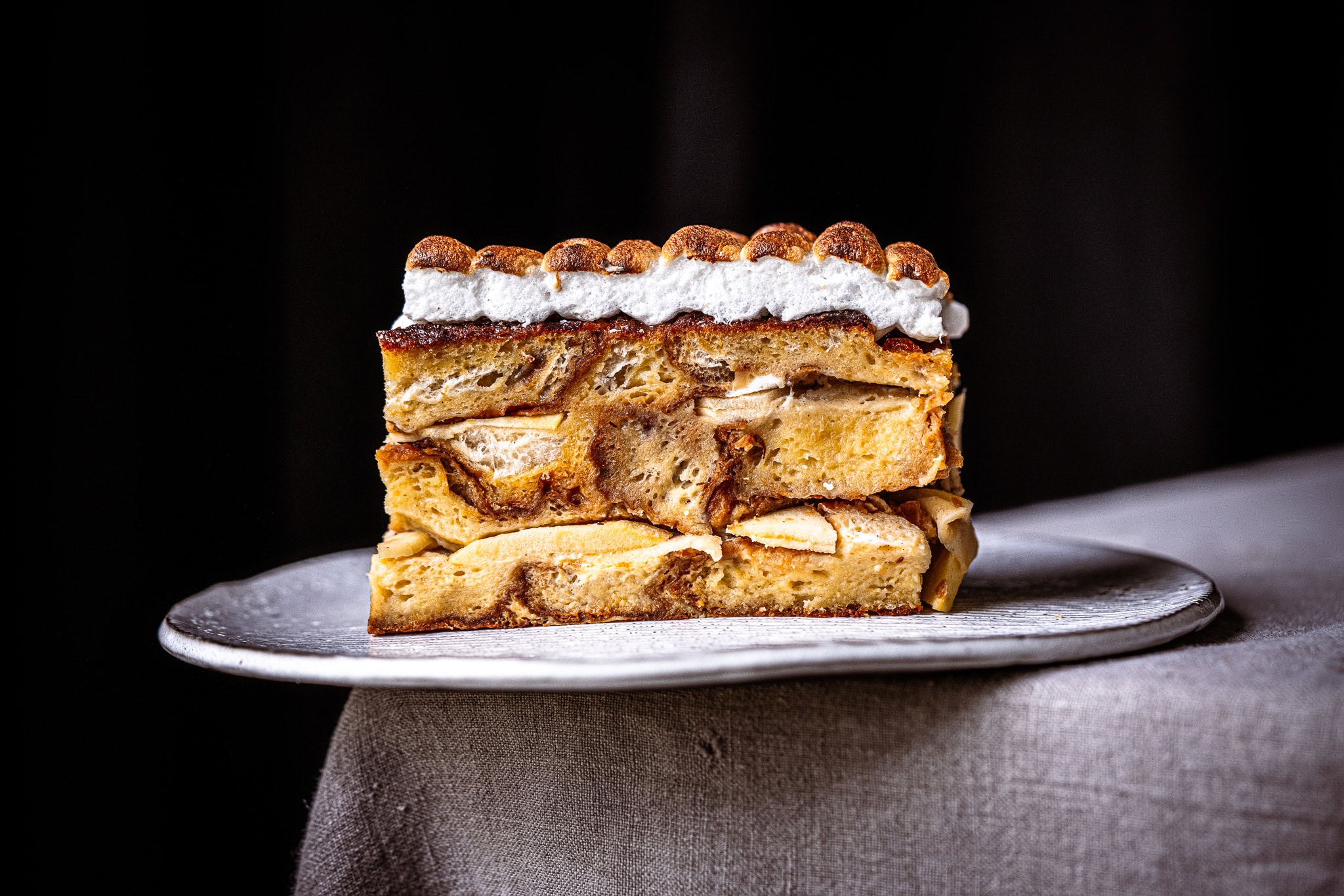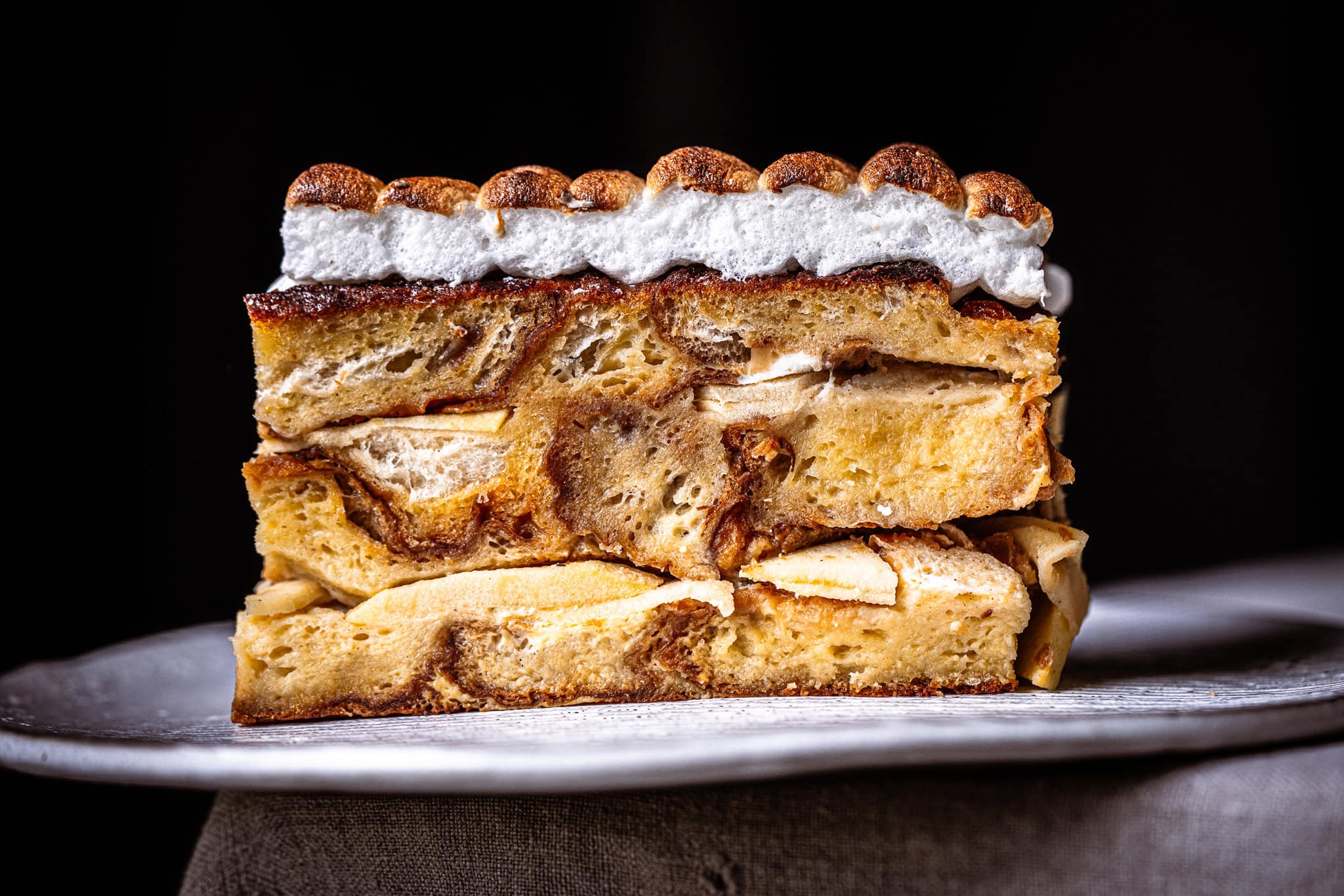 Schichte dann Striezel und Äpfel abwechseln hinein. Letzte Schicht soll Striezel sein.