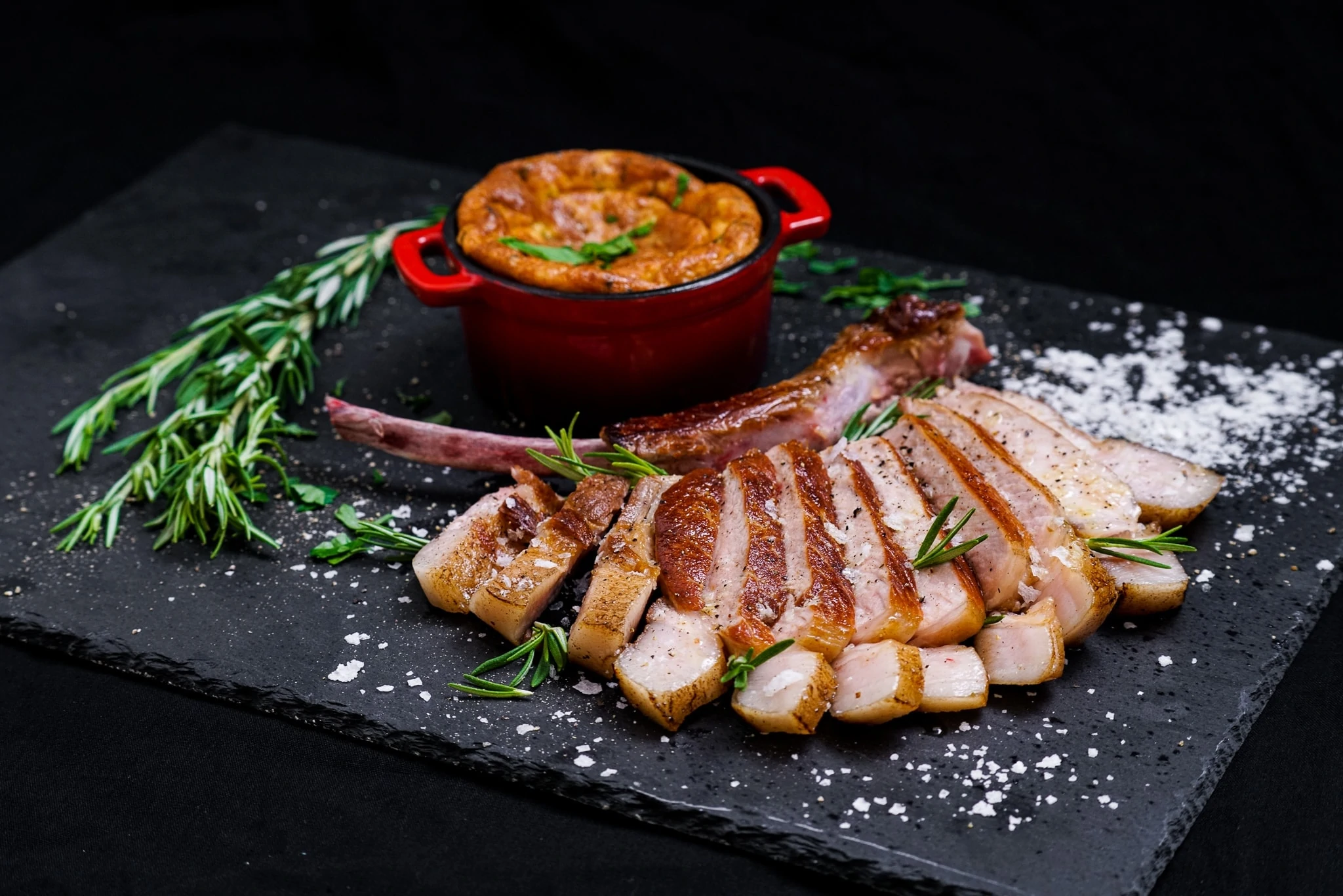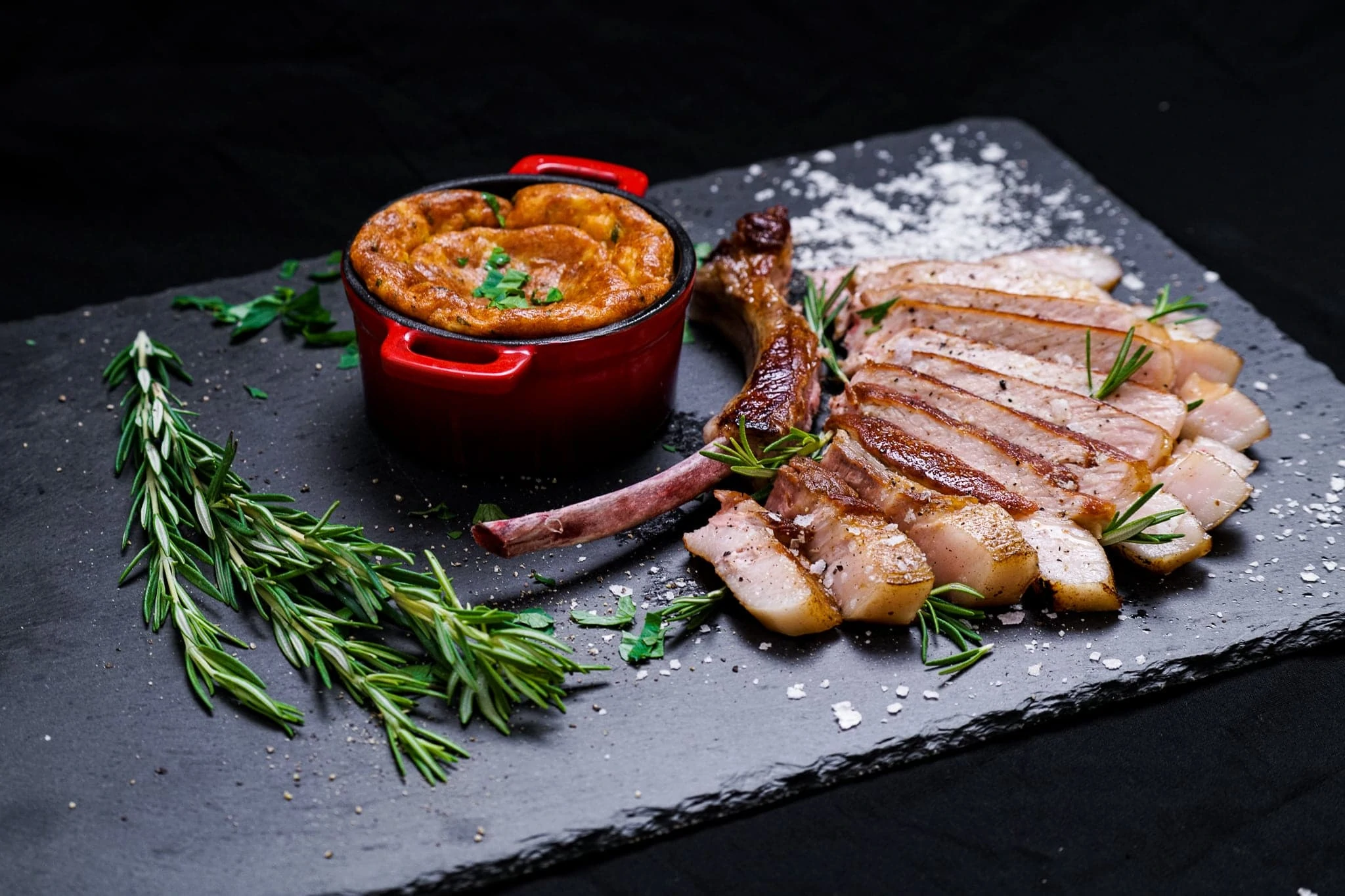 Tomahawks und Soufflé gemeinsam servieren.