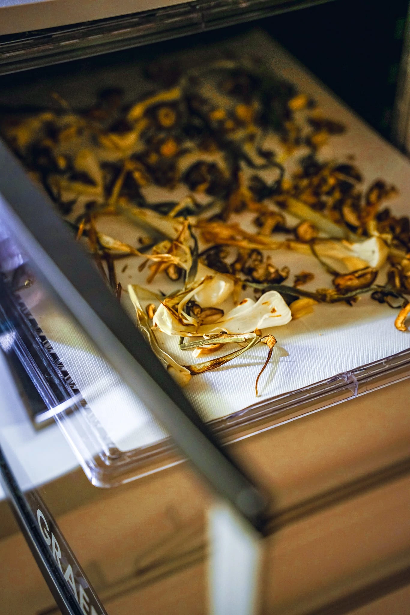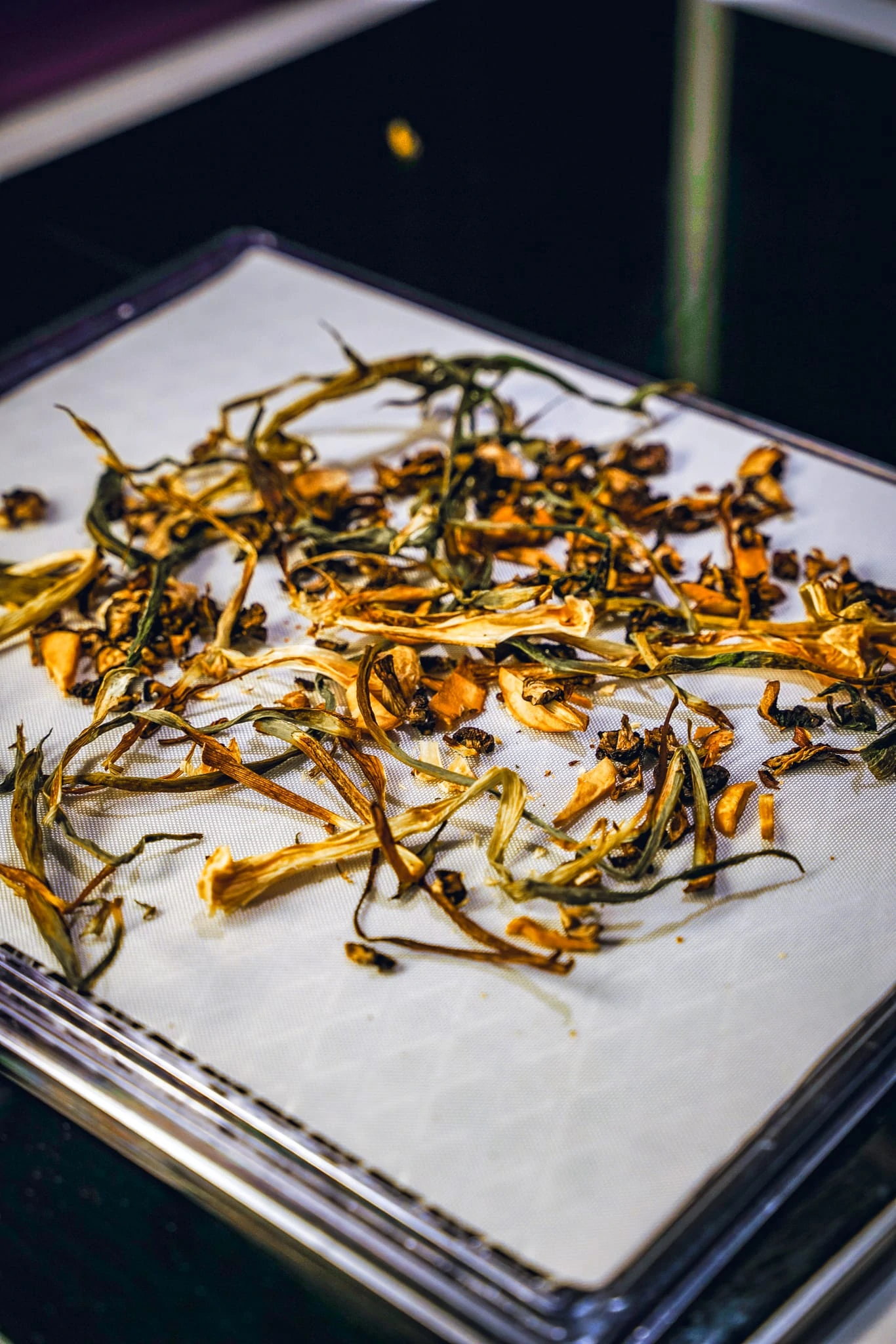 Dann bei 60 °C in deinem Dörrautomat oder bei Heißluft in deinem Backofen für 12-15 Stunden trocknen lassen.