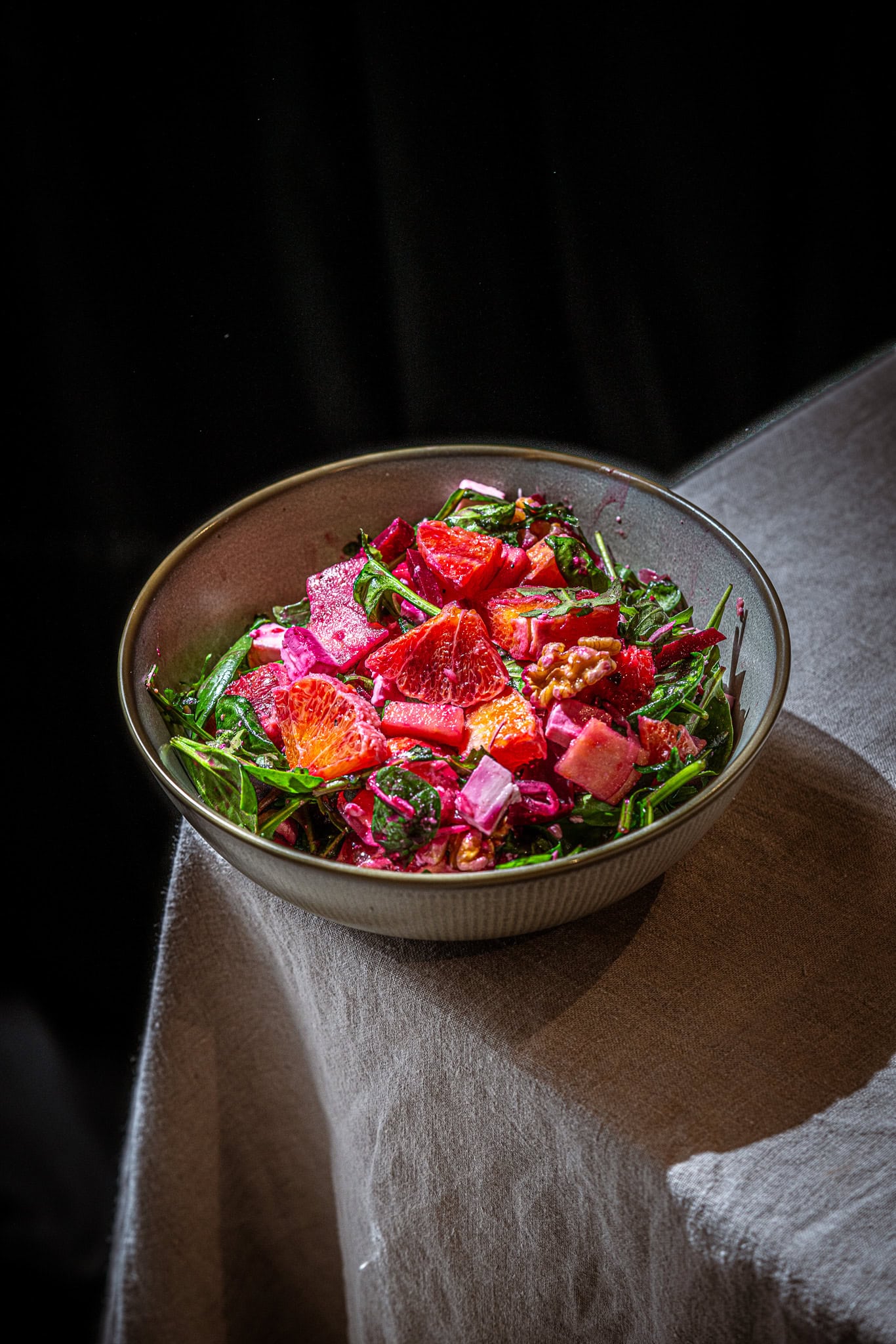 Bring Farbe und Frische in die kalte Jahreszeit mit diesem knackigen Wintersalat! Die Kombination aus der Süße der Orangen, der erdigen Note der Roten Rübe und dem cremigen Feta solltest du dir keinesfalls entgehen lassen. Nicht zu vergessen: Walnüsse für den Extra-Crunch! Ich mag Salat mit Feta ja im Allgemeinen sehr gerne, diese Variante ist aber wirklich etwas Besonderes. Ob als gesunde Mittagsmahlzeit, farbenfroher Begleiter zum Abendessen oder einfach solo zwischendurch – dieser Salat regelt. Versprochen.