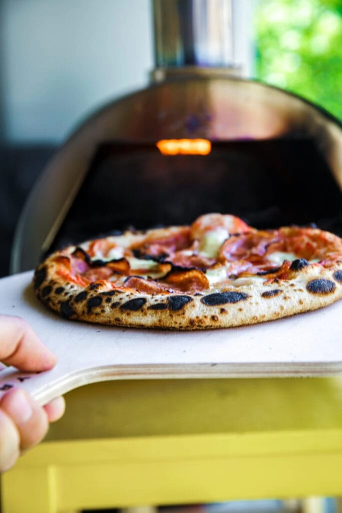 Auch wenn du nicht täglich Pizza isst – die Investition in einen richtig guten Pizzaofen zahlt sich einfach aus. Gute Pizzaöfen sind zwischen 250-500 Euro zu haben. Schon ein stolzes Sümmchen, aber einfach jeden Cent wert. Diese Öfen erreichen in 15 Minuten bis zu 500 °C und sind einfach perfekt zum Pizzabacken. Deine Pizza wird darin lediglich 60-90 Sekunden gebacken und seien wir ehrlich: viel länger möchte man auf Pizza doch auch nicht warten?! Meine beiden Pizzaofen-Lieblinge sind der Nero von Burnhard und der Ooni Koda 16, seinerseits der große Bruder des Koda 12 und ebenfalls ein rein gasbetriebenes Modell mit richtig viel Fläche. Ob man diese Fläche letzten Ende wirklich braucht, kommt ganz auf die Größe der Pizza an, die man damit zubereiten möchte. Etwas mehr Platz hat aber noch niemandem geschadet, und auch wenn ich vermutlich locker mit dem kleinen Koda auskäme, ist es doch sehr g’schmeidig über etwas Bewegungsfreiheit zu verfügen. Mein Erfahrungsbericht zum Ooni Koda folgt übrigens in Kürze in einem separaten Beitrag. Ich halt dich auf dem Laufenden!