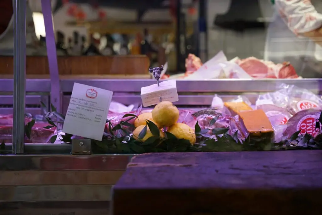 Wenn man eine normale Fleischerei betritt, stellt man sich an, bestellt sein Fleisch, bezahlt und geht wieder. Aber die Fleischerei von Dario ist keine normale Fleischerei. Wenn du da die Fleischerei betrittst, gibt’s erstmal ein Glas Rotwein. ACDC schallt durch die Macelleria, eine Kellnerin tanzt zwischen den Kunden und erzählt uns lautstark ein paar Geschichten auf italienisch. Ich muss gestehen, mein Italienisch ist etwas eingerostet bzw. kann ich gar nicht Italienisch, aber mit ein bisschen mehr Wein hab ich gleich mehr verstanden.