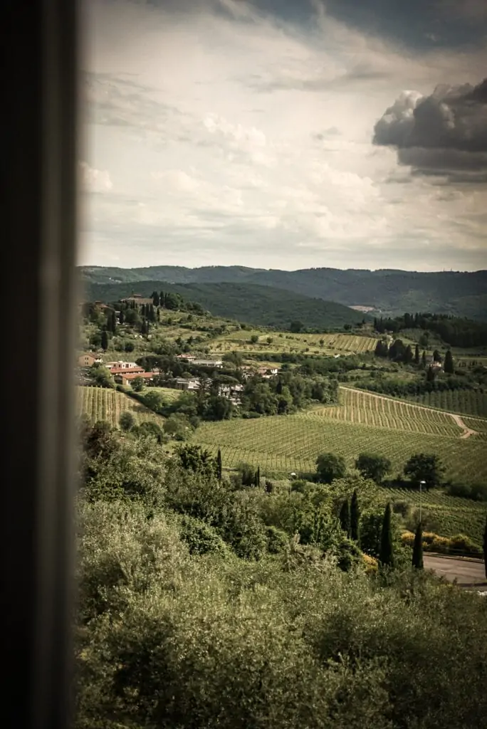 Nach acht Stunden Fahrt und zwei Pinkelpausen – was muss das muss – bin ich endlich in Panzano angekommen. Ich hab das Dorf davor gar nicht gekannt. Das liegt wohl auch daran, dass es dort bis auf Darios Fleischerei – und der traumhaften Aussicht – nicht viel gibt. Ich bin durch die engen Straßen gefahren, auf dem Weg zum Gästehaus von Darios Schwester. Im Dorf selbst ist nicht viel los gewesen. Aber auf einem Straßenabschnitt sind mir locker 30 Menschen entgegengekommen. Nein, das waren nicht die Motion Cooking Groupies, vielmehr war es der Dario Cecchini „Fan-Club“. Sie alle sind gerade aus der Fleischerei oder in die Fleischerei gegangen. Ich hab zwei Mal hingeschaut, was da eigentlich gerade passiert, da die Macelleria selbst wirklich sehr unscheinbar ist. Nur die vielen Leute davor lassen erahnen, dass es hier etwas Besonderes gibt. Ich bin super aufgeregt gewesen. Aber bevor es für mich in die Fleischerei gegangen ist, hab ich das Gästehaus von Darios Schwester bezogen. Das Haus ist wirklich traumhaft schön. Die Einrichtung ist typisch italienisch mit viel Liebe zum Detail und vielen persönlichen Elementen. Der Ausblick über die hügelige Landschaft der Toskana ist wirklich unglaublich. Ich hab dort Mario getroffen und hab mich gemeinsam mit ihm auf den Weg zu Dario Cecchinis Fleischerei gemacht.